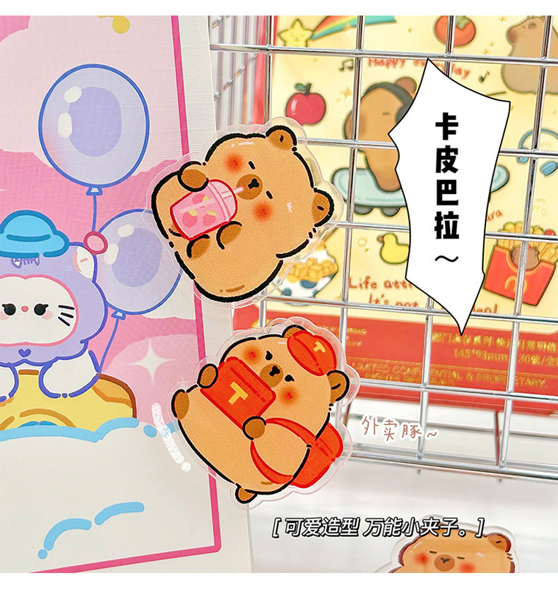 사랑스러운 Capibala Puffer 아크릴 PP 클립 학생 손 계정 노트 테스트 종이 클립 스낵 밀봉 클립스토어 가기