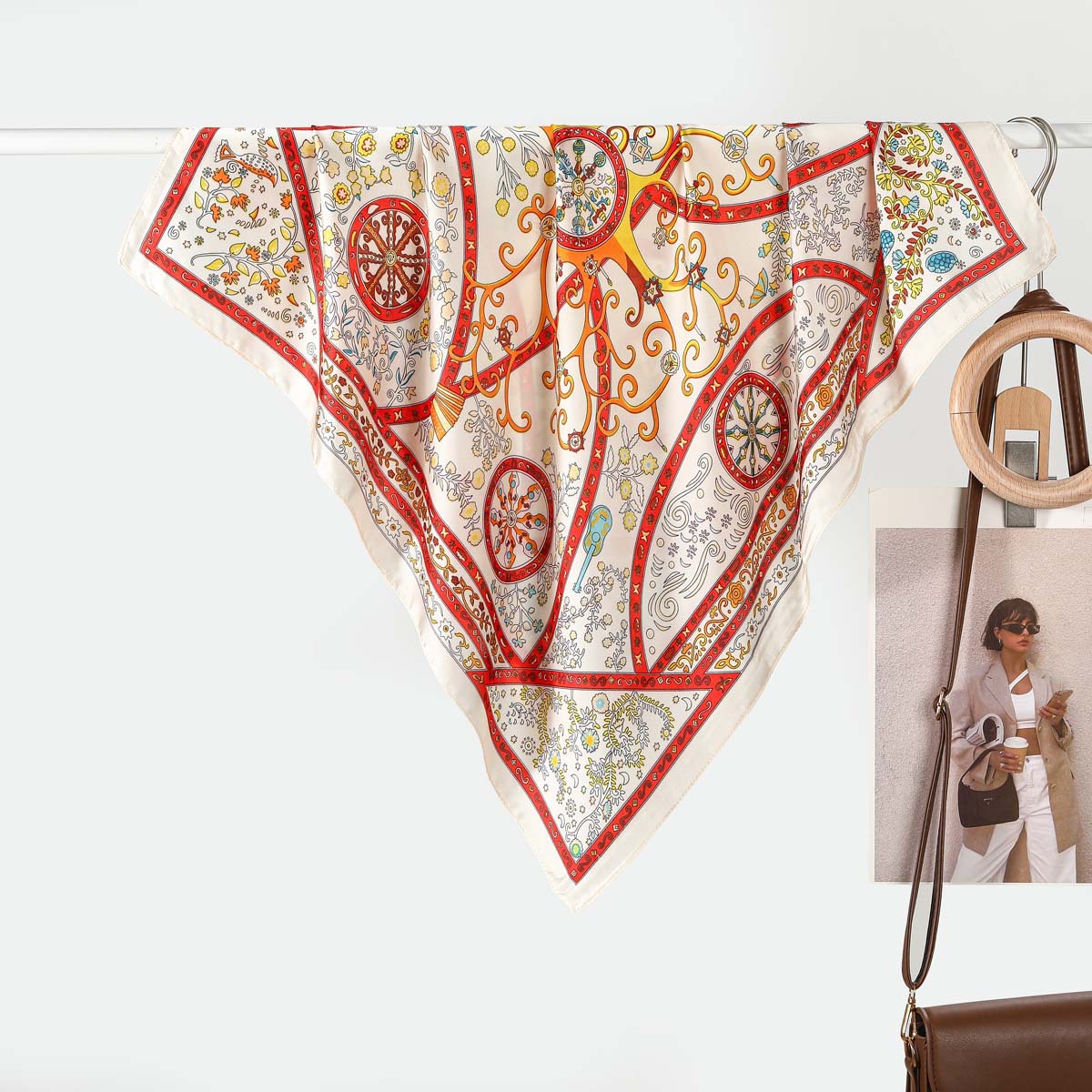 프랑스 스타일 70CM 작은 스퀘어 실크 여성용 휠 기하학적 색상 매칭 꽃 실크 스카프 헤드 스카프 목도리 배치