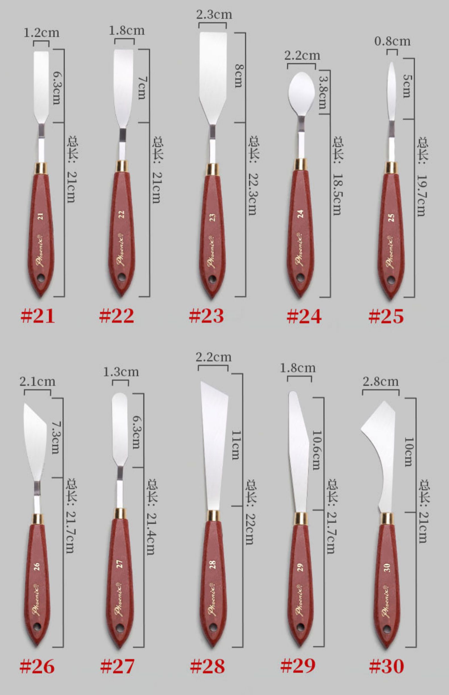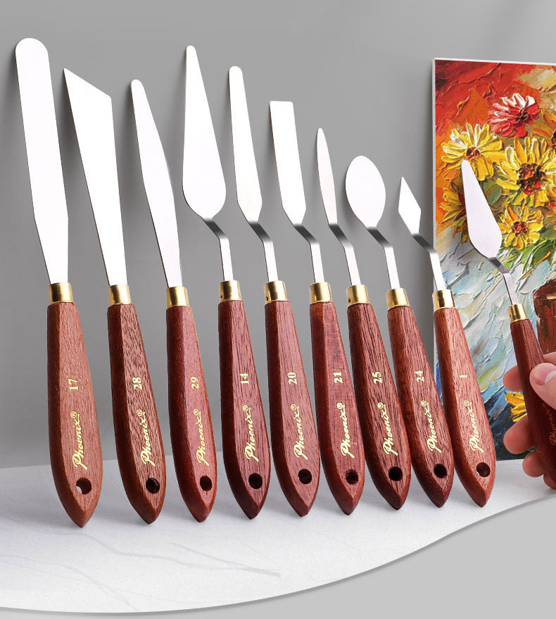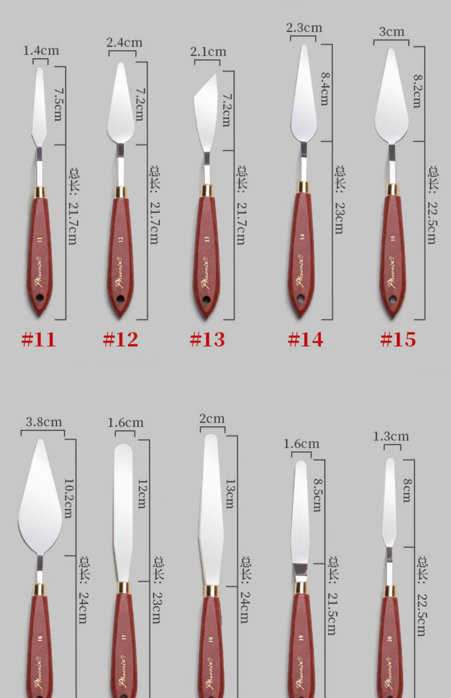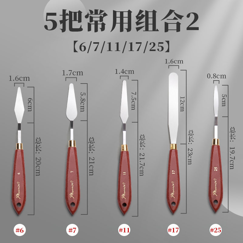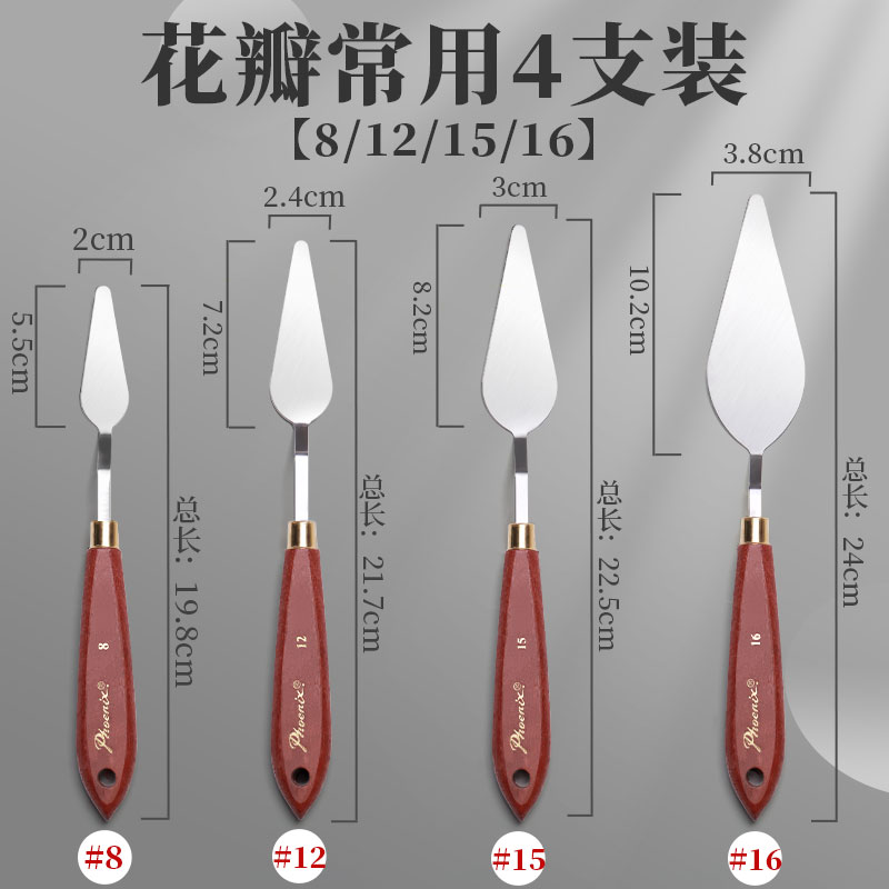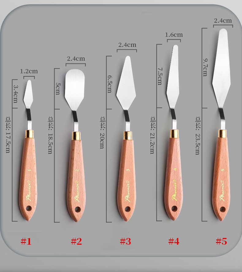 피닉스 브랜드 유화 스크레이퍼 아크릴 페인팅 팔레트 칼 페인팅 칼 뾰족한 주걱 꽃 예술 도구 세트 스몰 사이즈 부드러운