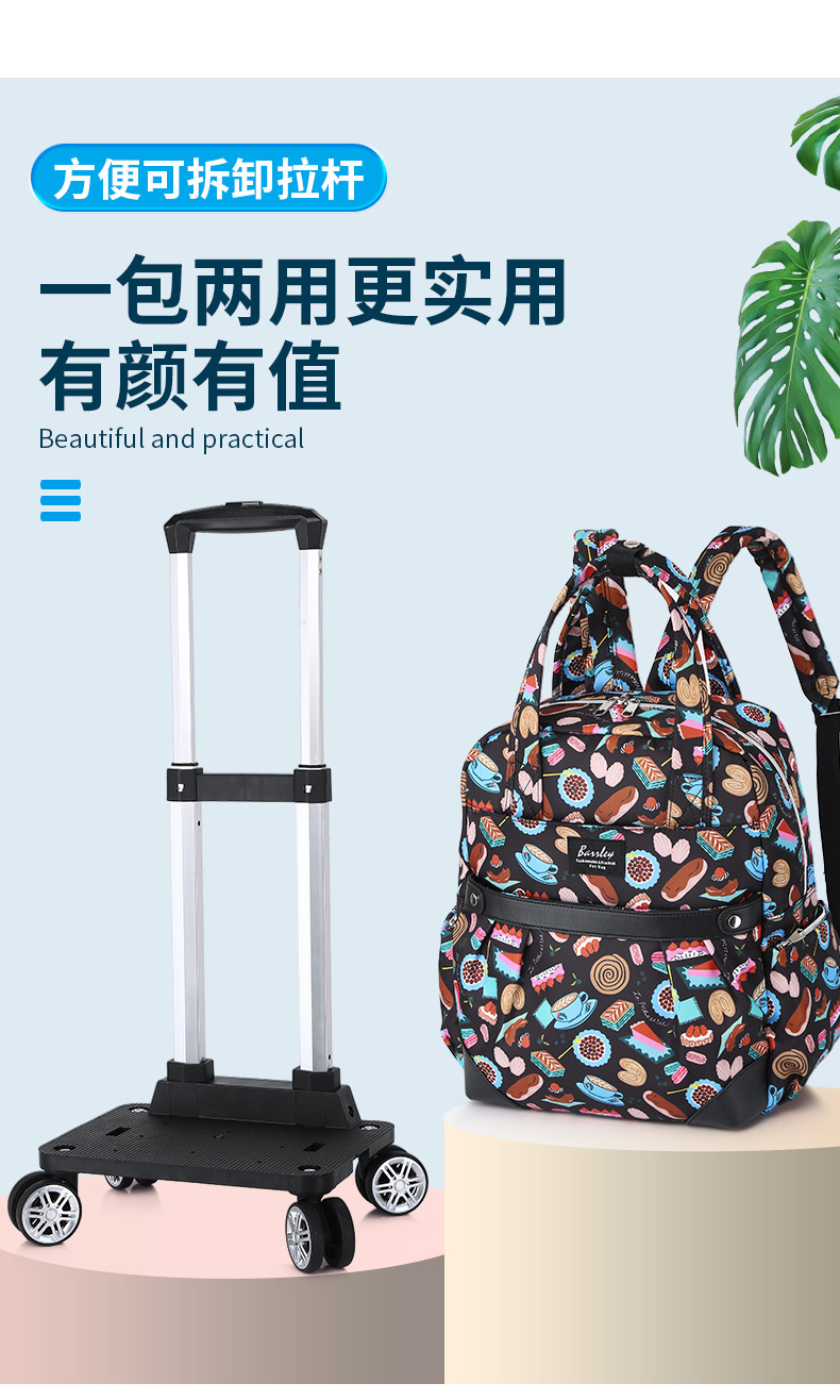 새로운 경량 트롤리 백팩 접이식 방수 여행 가방 대용량 탑승 트롤리 가방 유니버설 휠 수하물