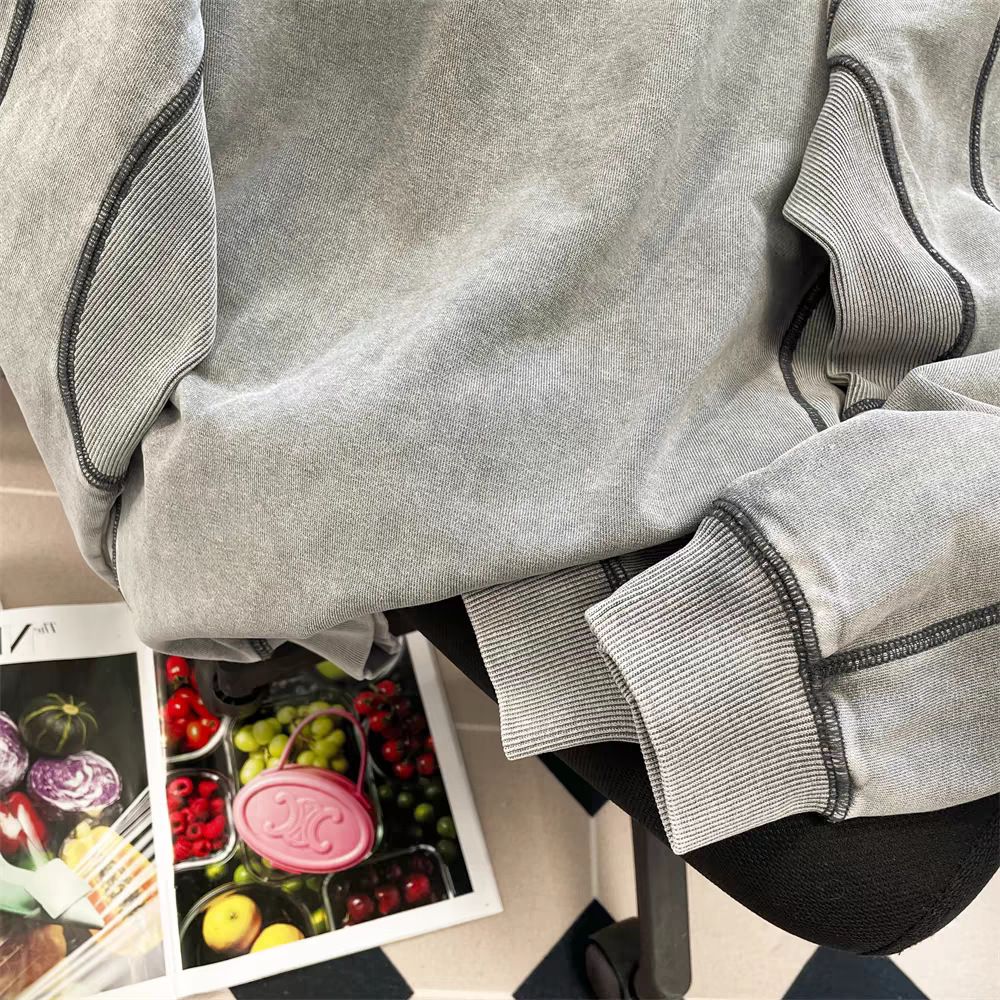 단색 아메리칸 스타일 트렌디 브랜드 올드 세탁 후드 남성 및 여성 봄 및 가을 기모 두꺼운 패치 워크 코트스토어 가기