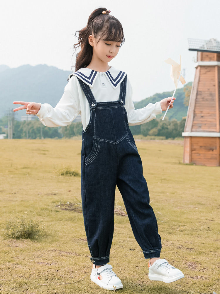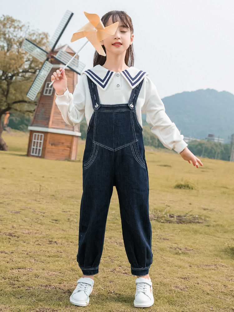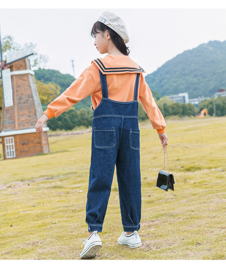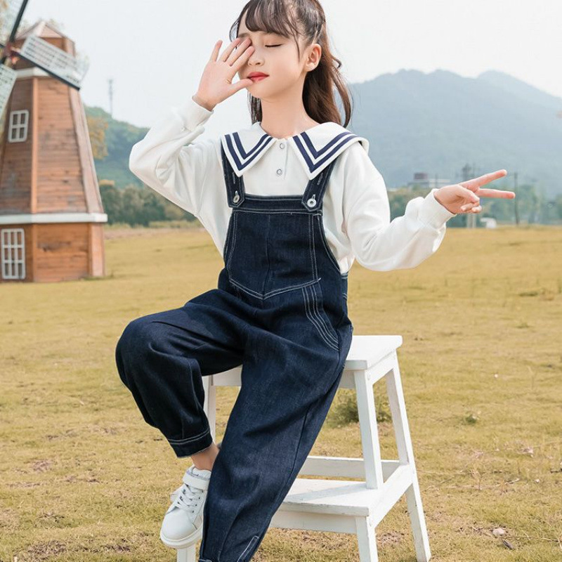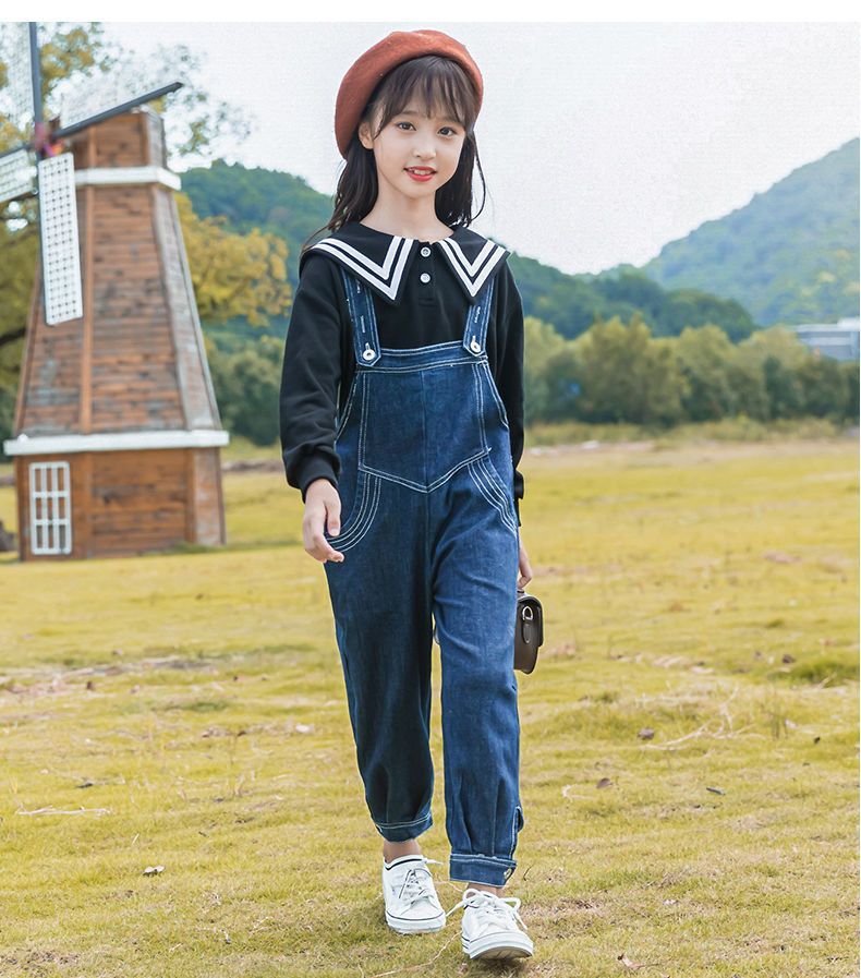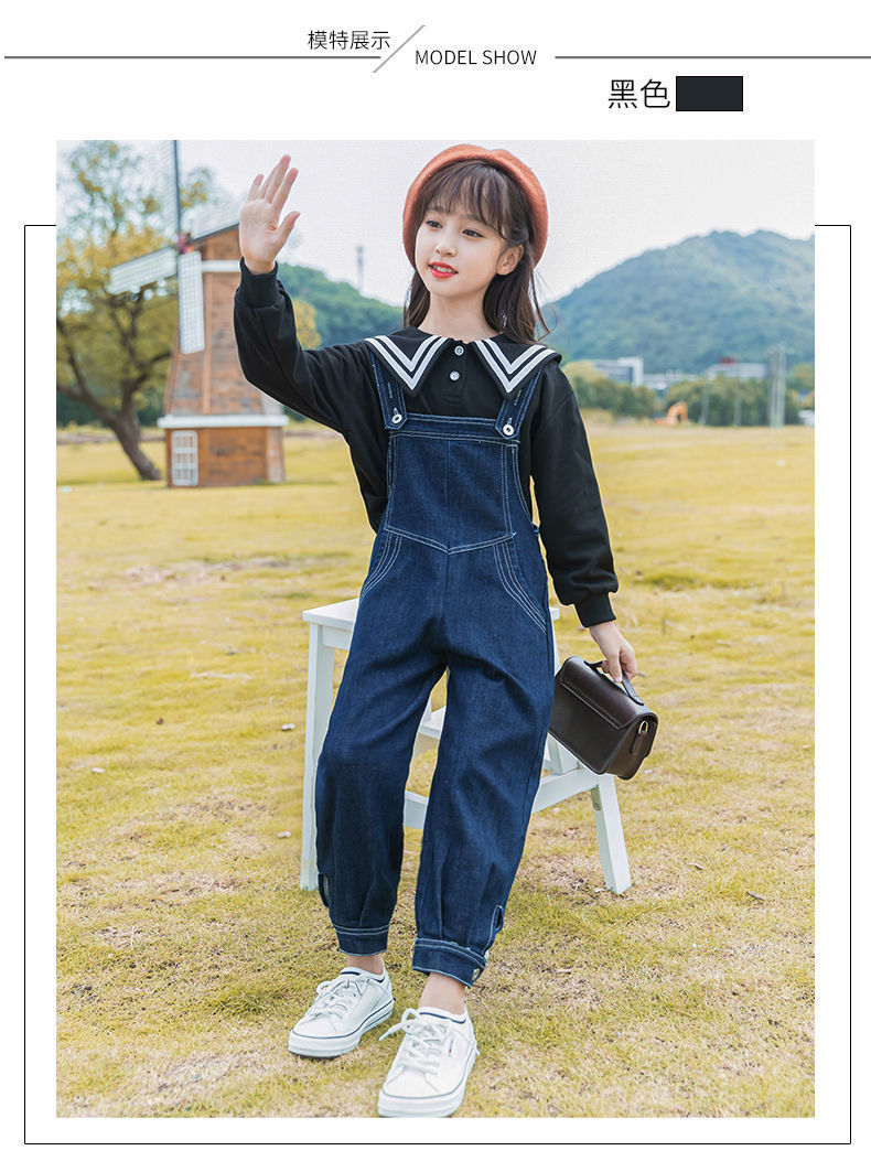 큰 어린이 및 초등학생을위한 봄 가을의 새로운 세련된 느슨한 새로운 유행 투피스 세트 세트 소녀 작업복스토어 가기