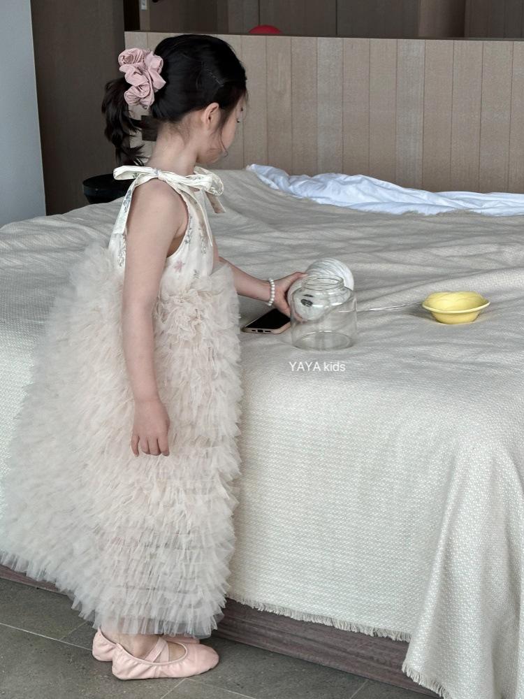 소녀 거즈 스커트 2025 여름 새 어린이 한국 스타일 꽃 슬링 투투 스커트 여성 보물 중공업 공주 원피스