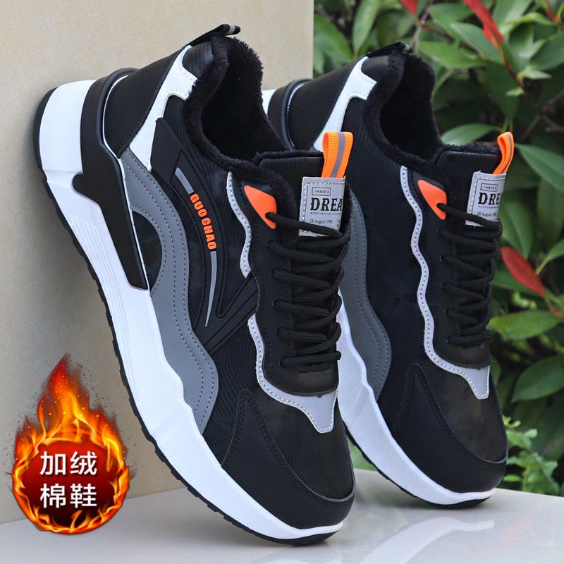 겨울 학생 면화 기모 따뜻한 운동화 남성용 부드러운 바닥 운동화 가죽 방수 미끄럼 방지 캐주얼 신발