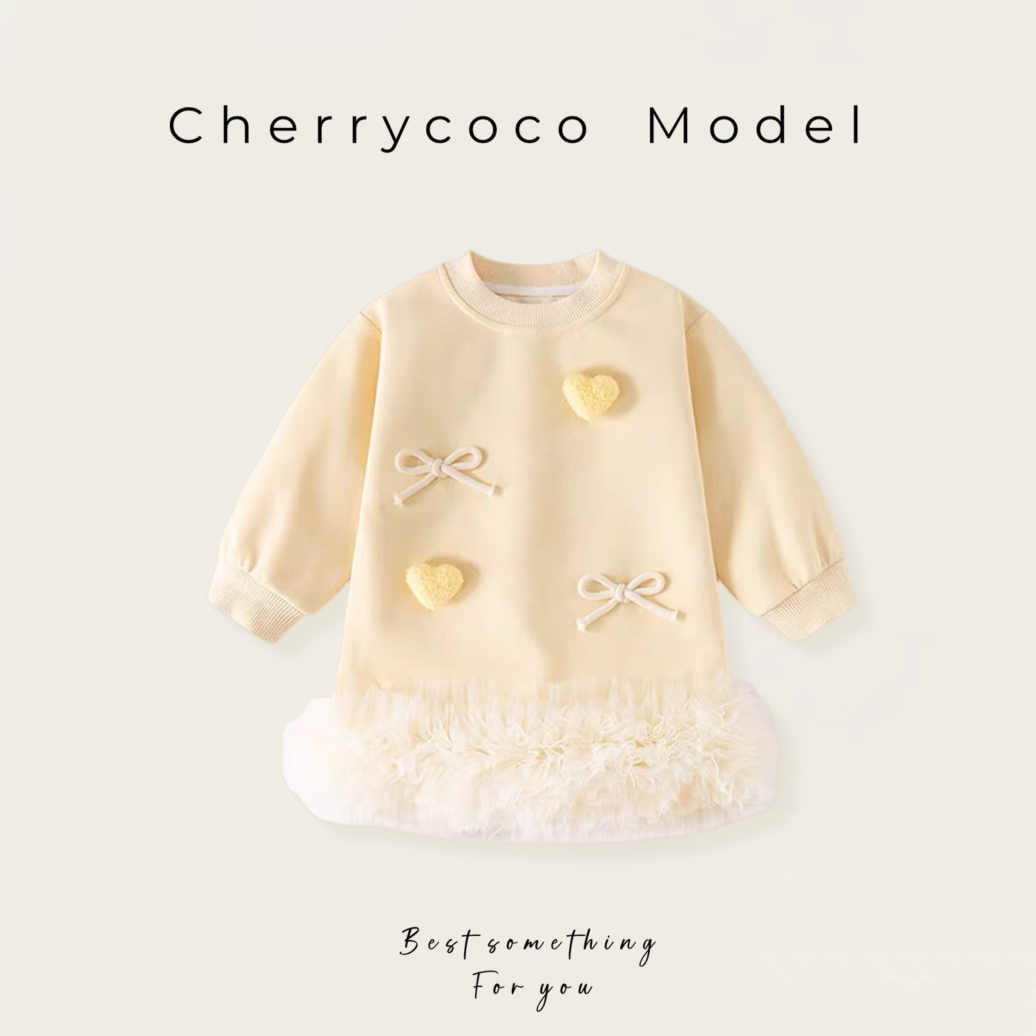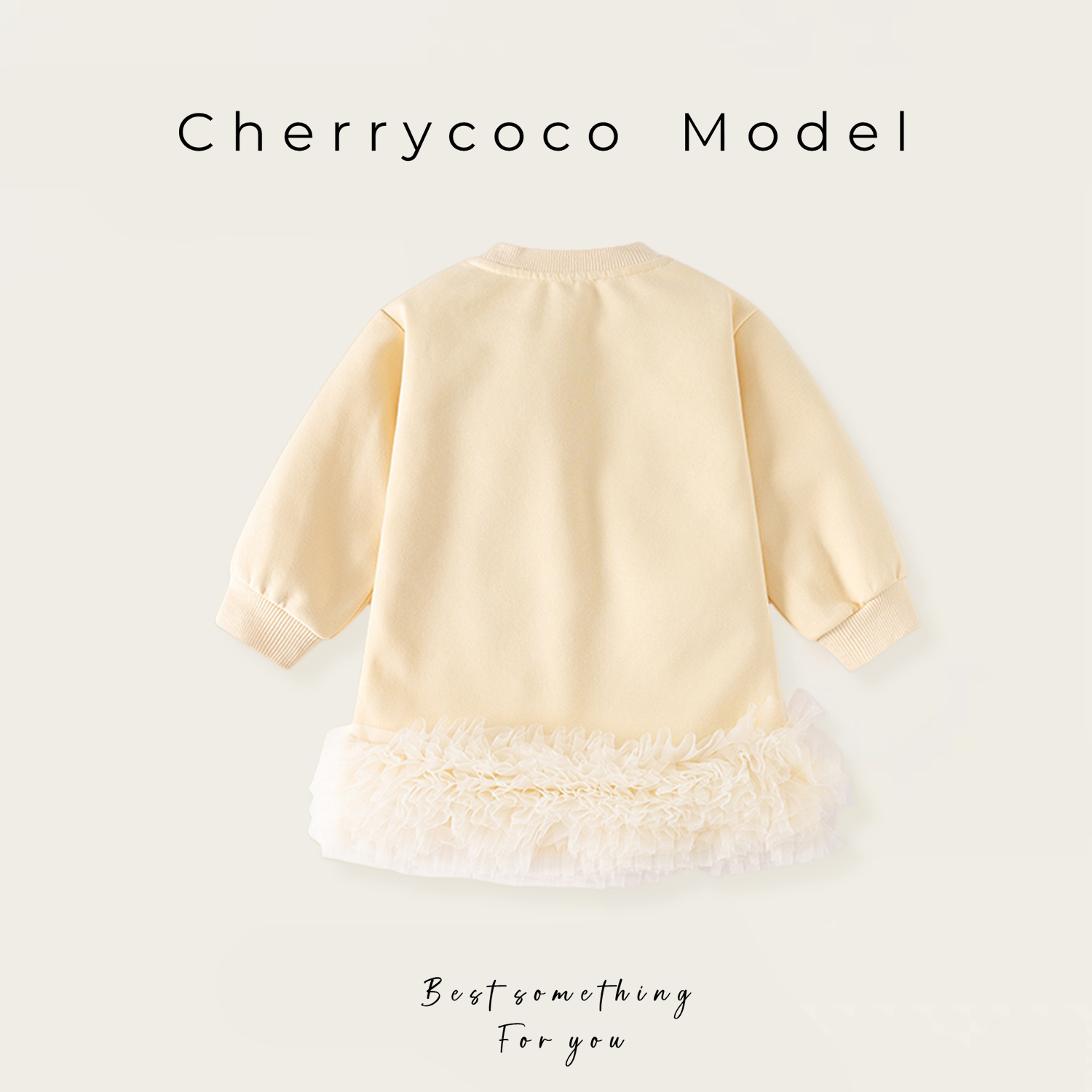 CHERRYCOCO 소녀 원피스 봄 2025 새로운 어린이 원피스 아기 공주 원피스 메쉬 땀 원피스