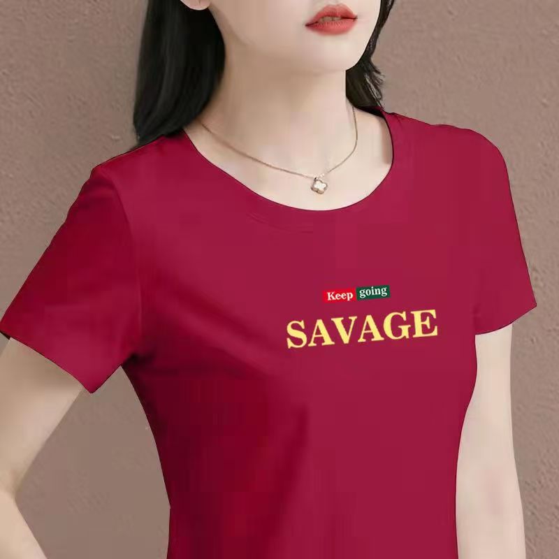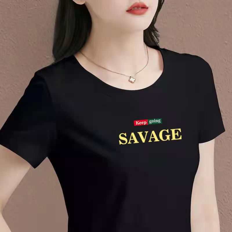 하이 엔드 우아한 퓨어 코튼 반팔 티셔츠 여성 2025 새로운 패션 여름 한국식 슬림 핏 슬리밍 탑 티셔츠스토어 가기