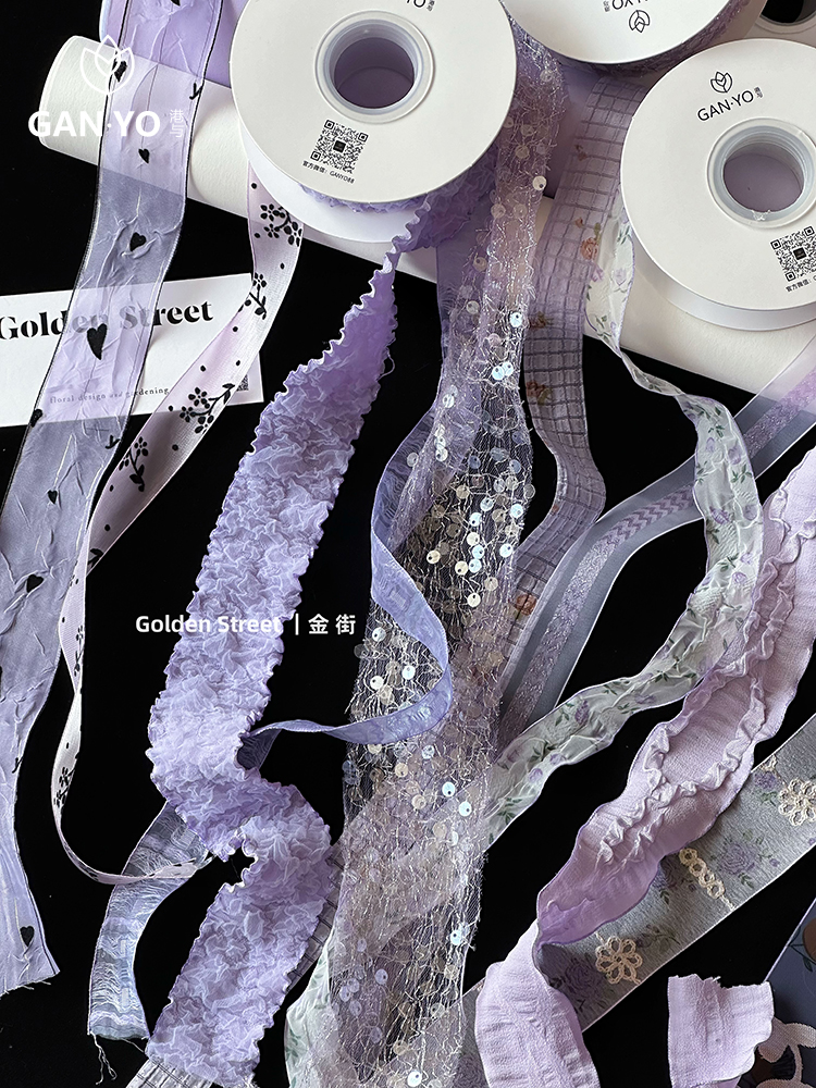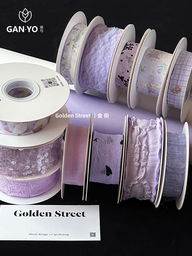 홍콩과 로맨틱 퍼플 시리즈 리본 신선한 꽃 번들 포장 스트랩 플로리스트 디저트 베이킹 수제 플로라 diy 소재