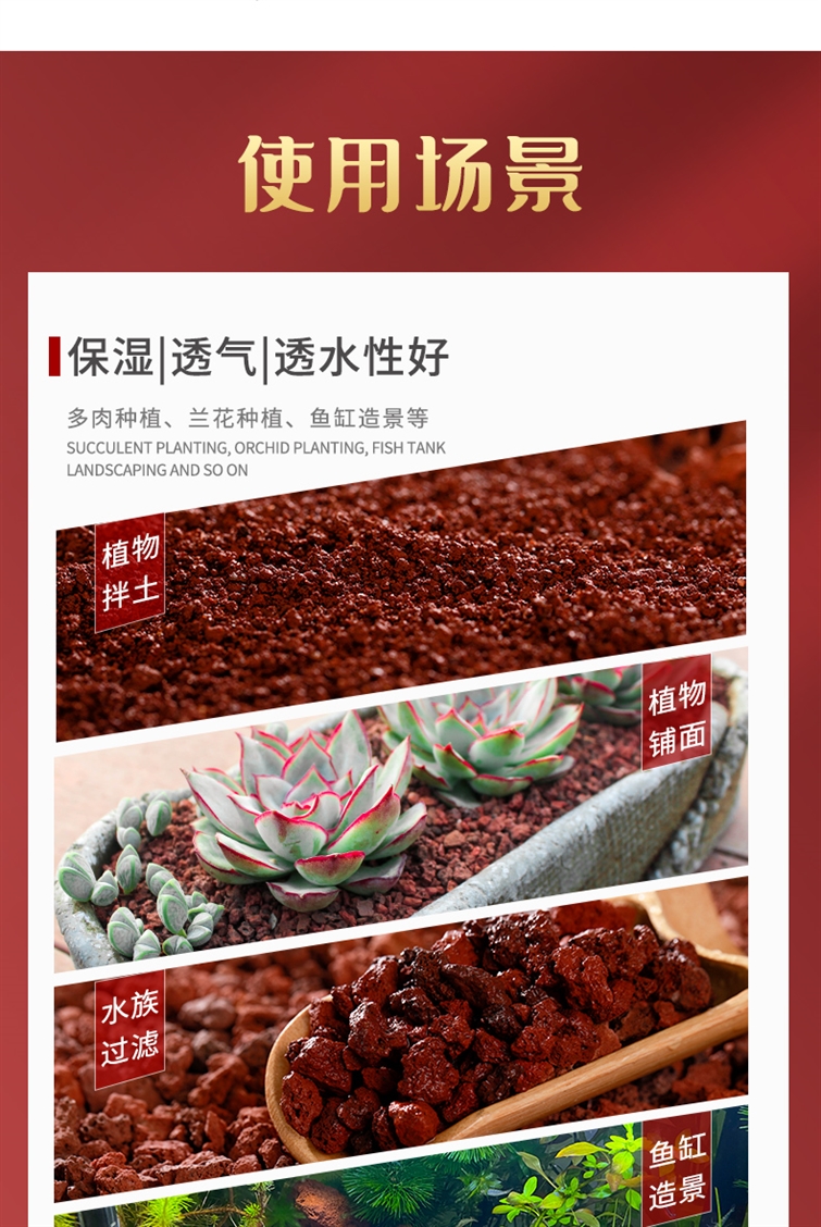 천연 붉은 화산석 다육질 과립 토양 물 잔디 진흙 난초 심기 재료 포장 돌 물고기 탱크 바닥 모래 필터 재료 화산암