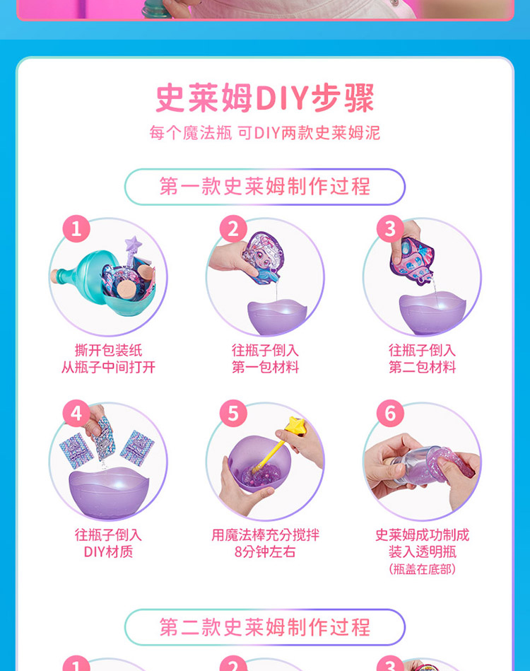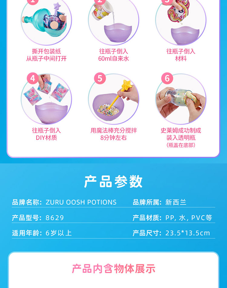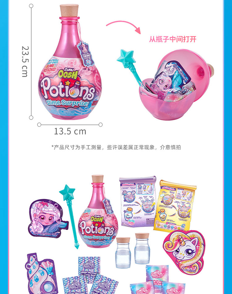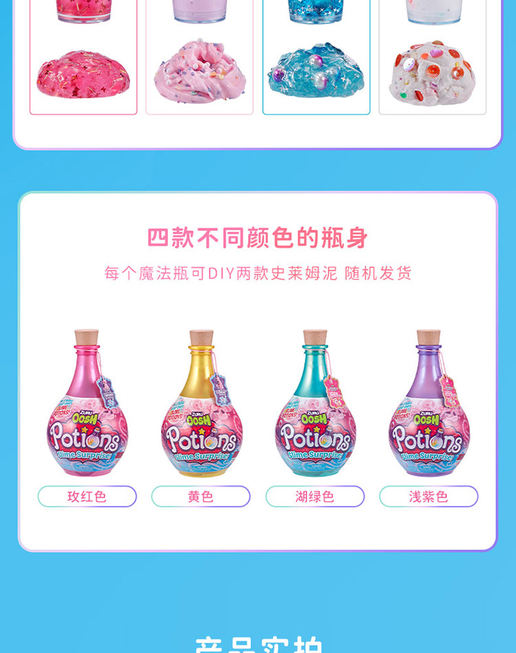 ZURU oosh 소프트 소프트 뮤직 DIY 서프라이즈 슬림 매직 병 크리스탈 라이트 클레이 컬러 진흙 플라스틱 풀 세트