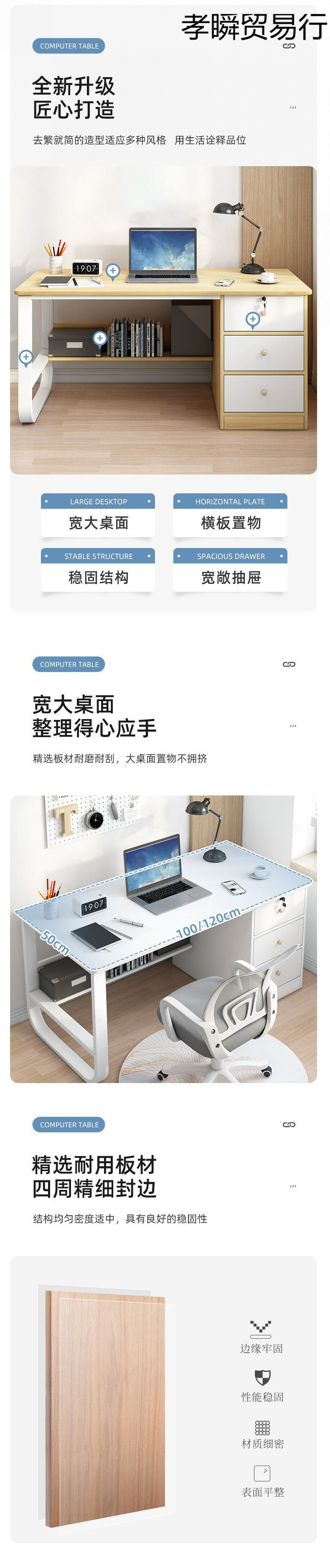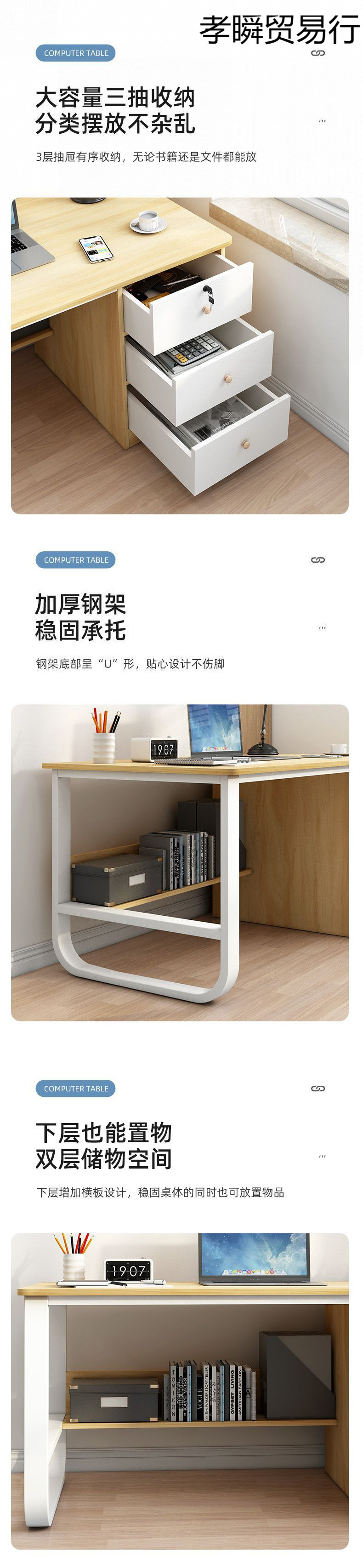 침실 컴퓨터 테이블 홈 데스크톱 책상 기숙사 학생 쓰기 간단한 렌탈 룸 책상 책장 통합스토어 가기