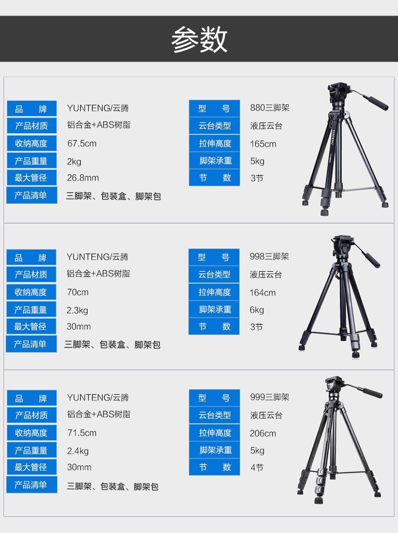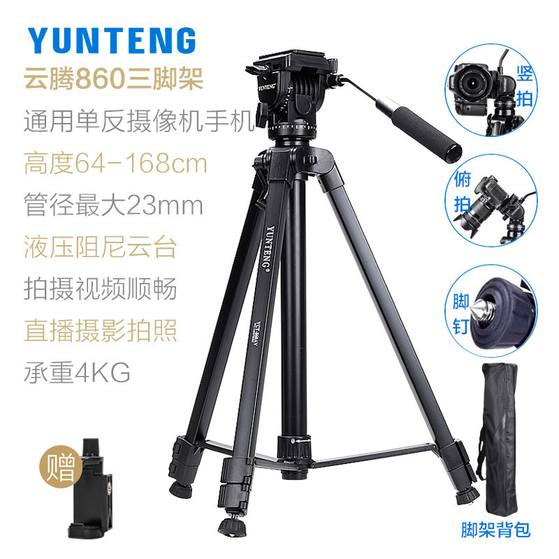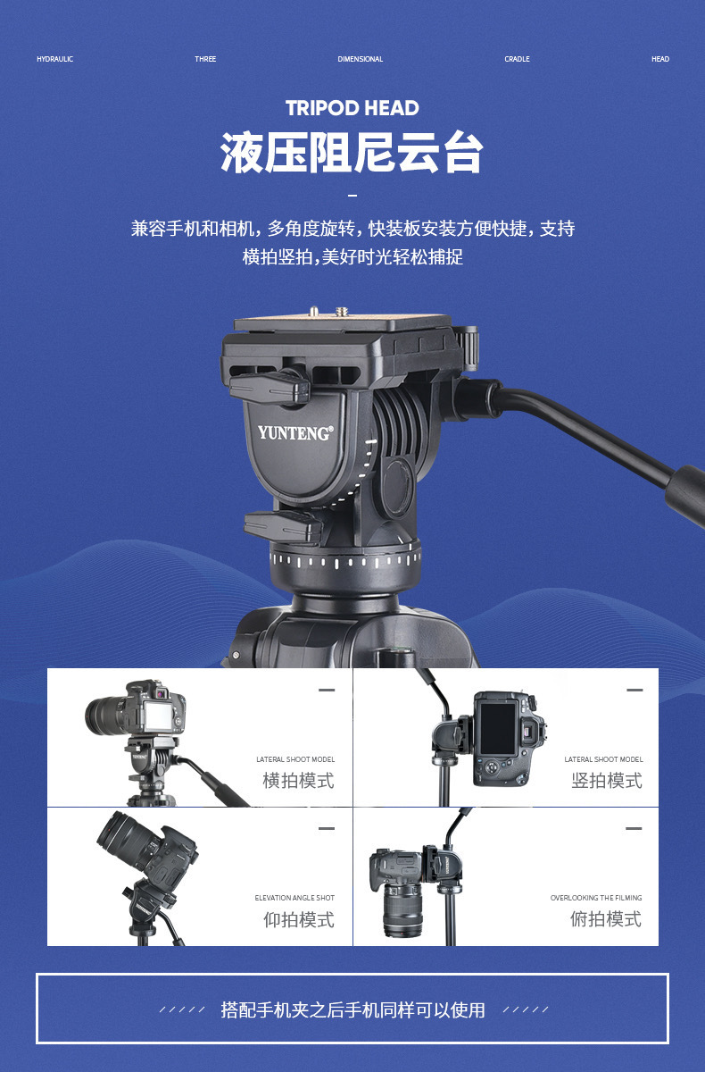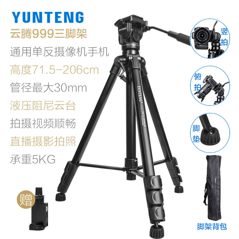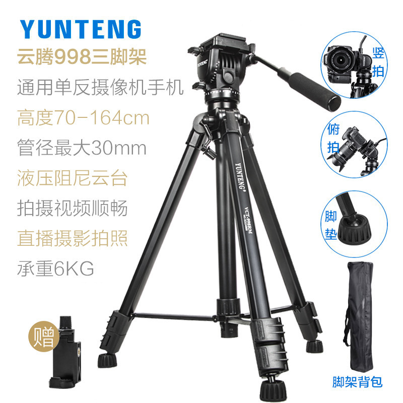 새로운 휴대 전화 라이브 방송 브래킷 Yunteng 880 998 999 카메라 삼각대 전문 SLR 유압 팬 틸트