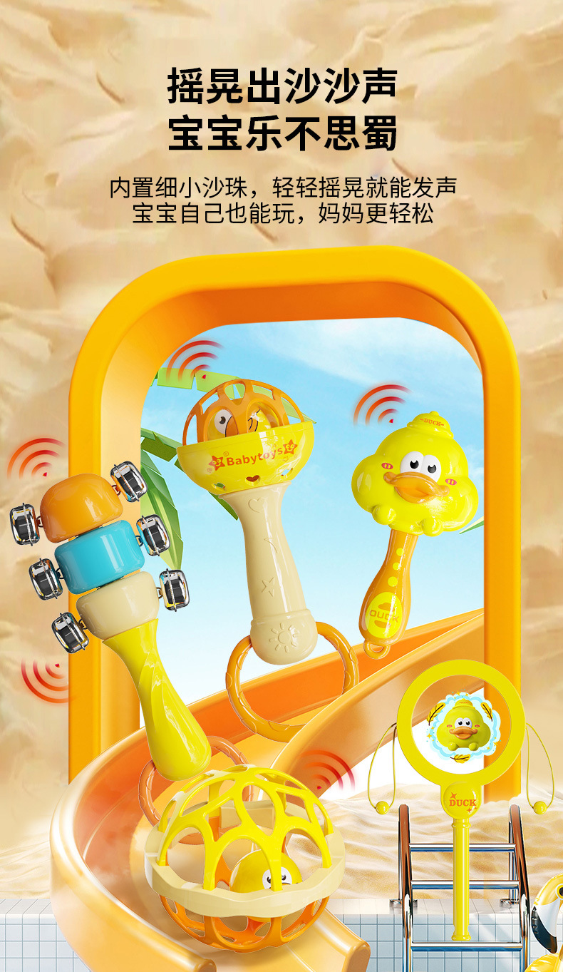 베이브 작은 노란색 오리 딸랑이 아기 장난감 0-1 세 아기는 치아 껌 해머 딸랑이 진정 장난감을 g아 먹을 수 있습니다.