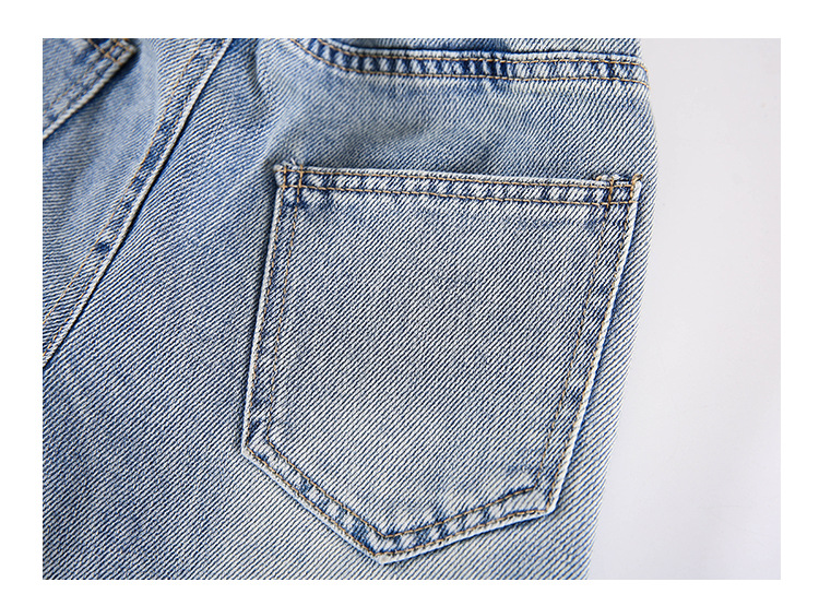 소녀 바지 봄 거친 가장자리 유행 한국 스타일 어린이 서양식 올매치 소녀의 스트레이트 데님 와이드 다리 바지 Huzhou Zhili스토어 가기