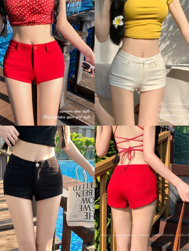 화이트 타이트 캐주얼 슈퍼 반바지 여성 여름 스파이스 걸스 섹시 슬림 핏 슬리밍 올 매치 스트레이트 팬츠 A 자형 핫 팬츠스토어 가기