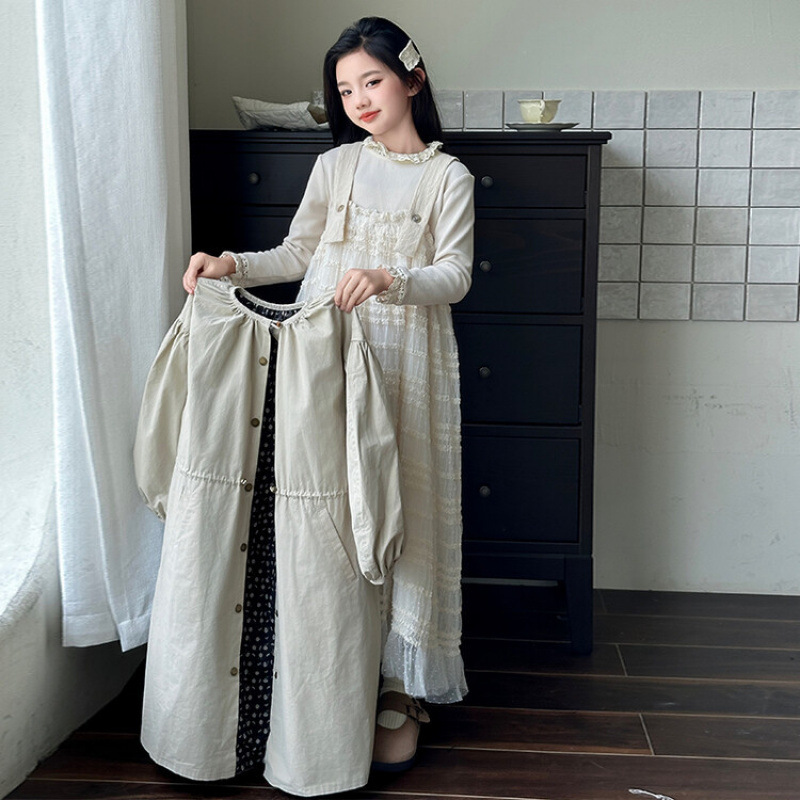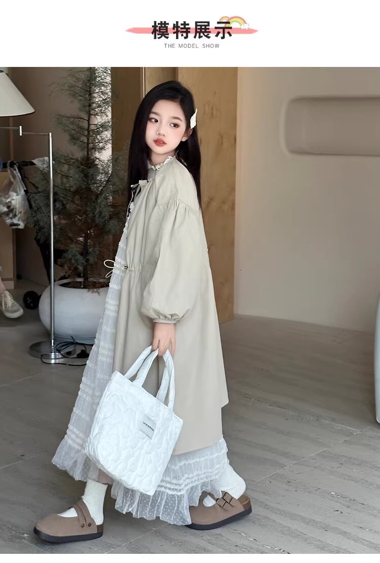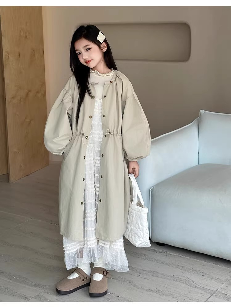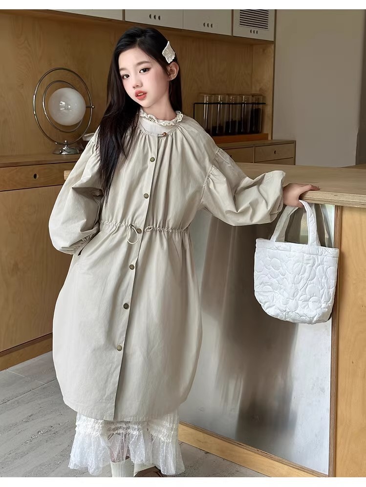 양면 소녀 코트 롱 코트 2025 대형 어린이를위한 새로운 세련된 중간 길이 탑