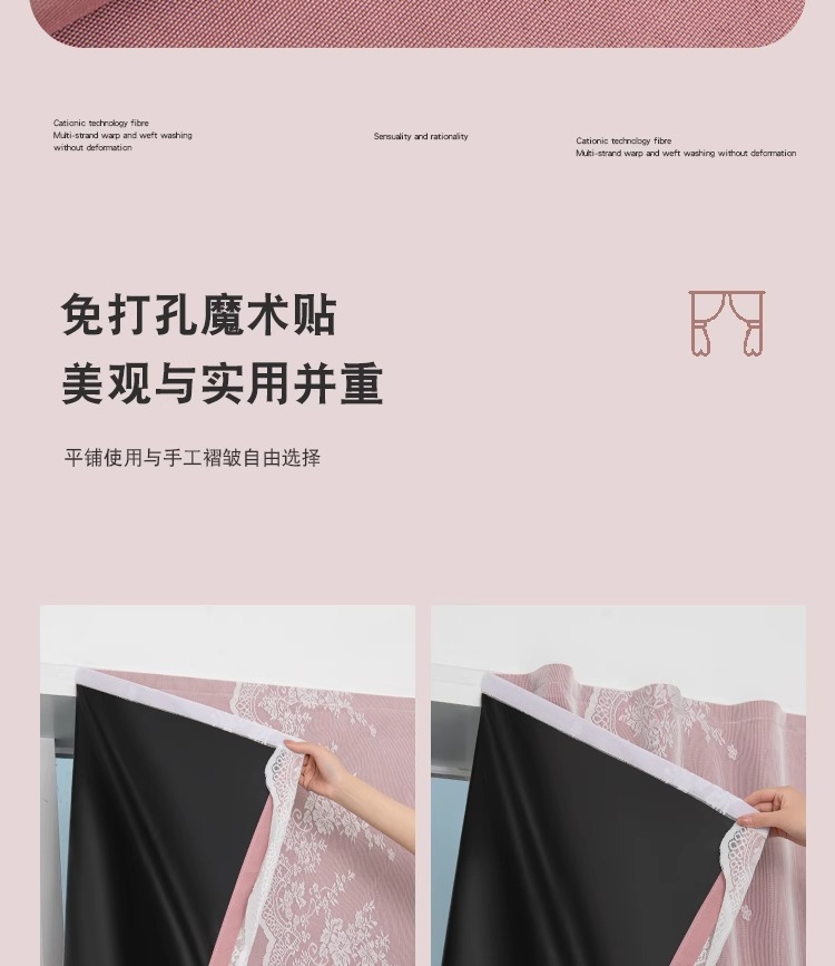 벨크로 풀 블랙 아웃 더블 레이어 커튼 셀프 접착 펀치 프리 설치 렌탈 하우스의 작은 창 커튼을위한 간단한 접착제