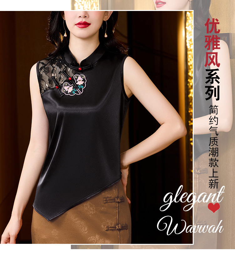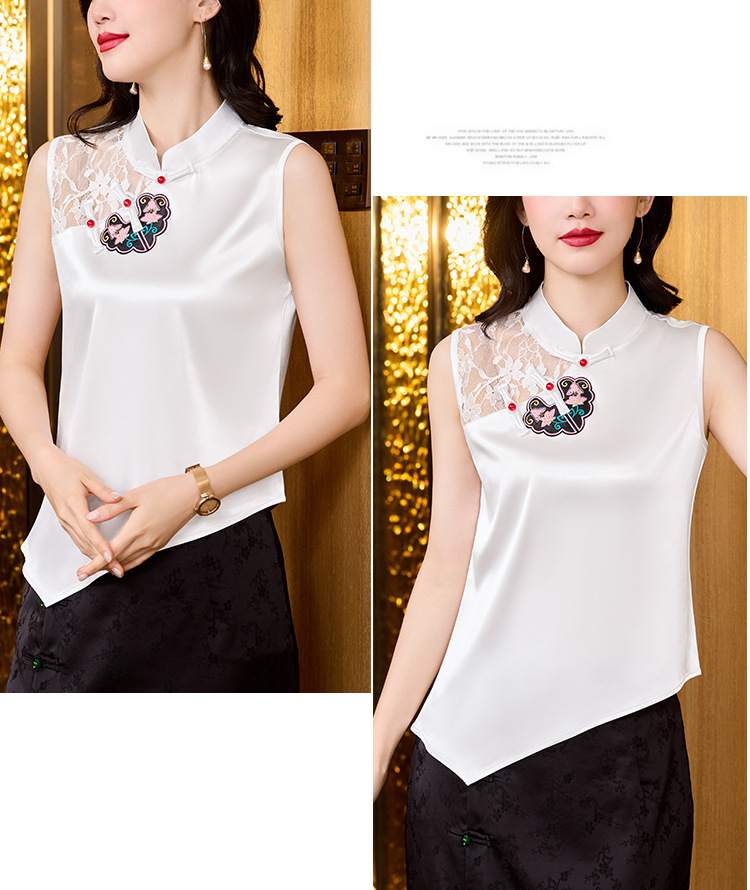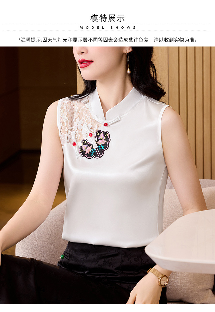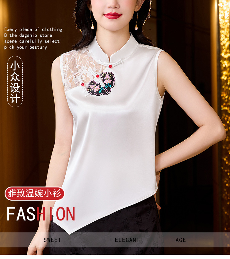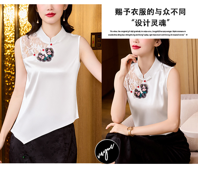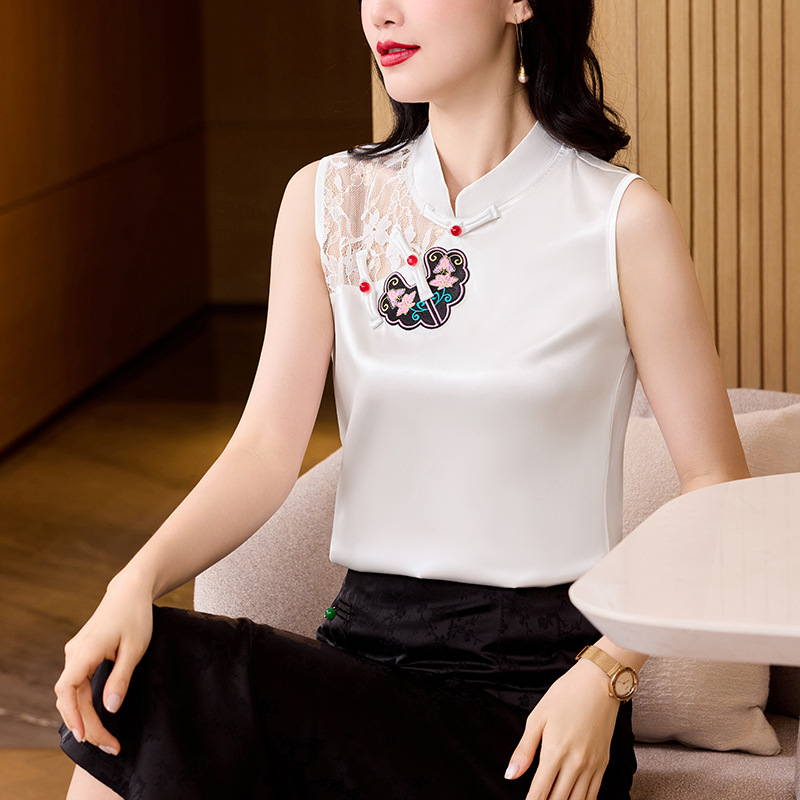 2025 봄 새로운 국가 스타일 레이스 버클 기질 새틴 조끼 슬림 기본 셔츠 도매
