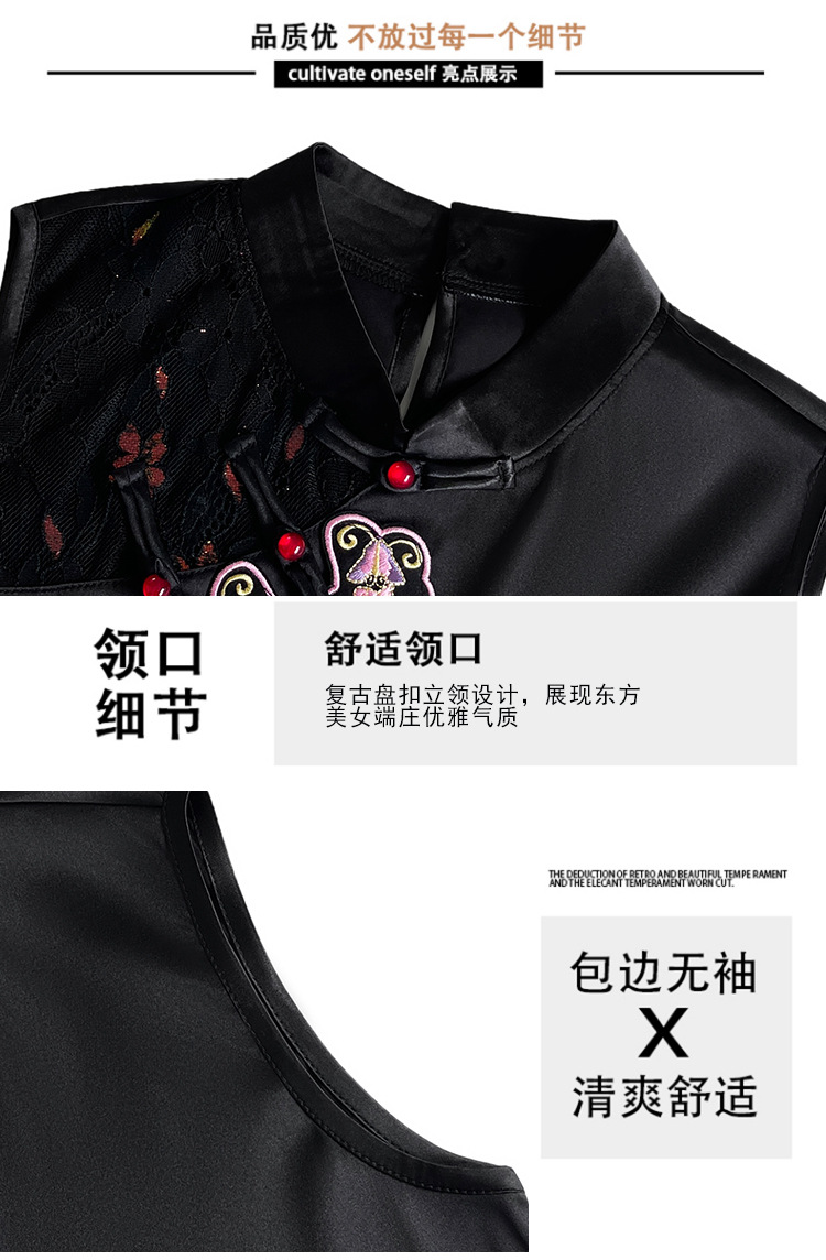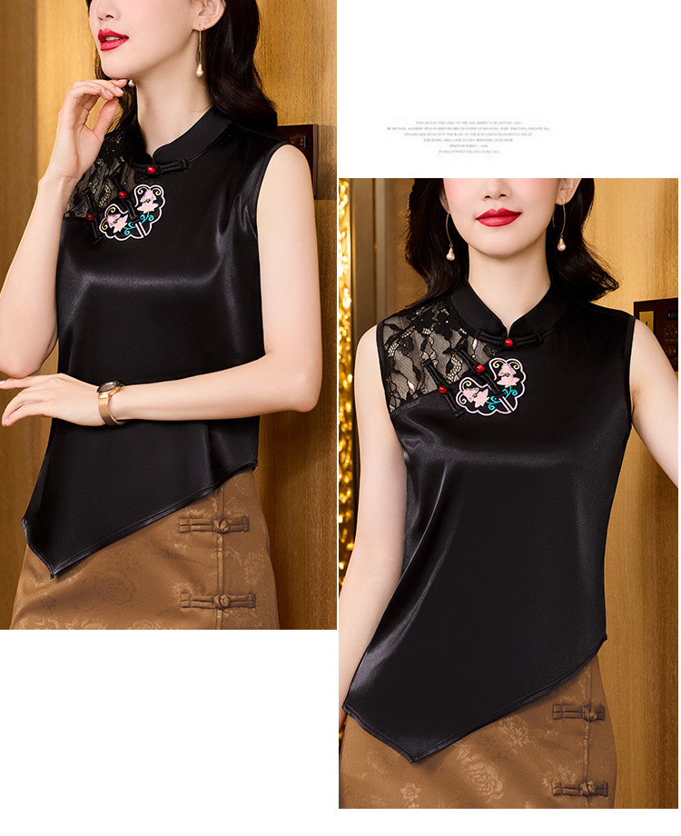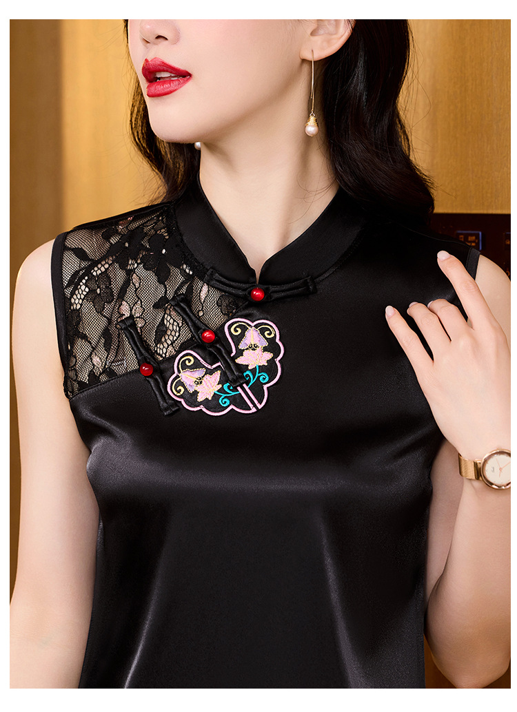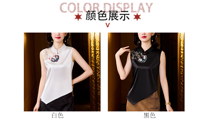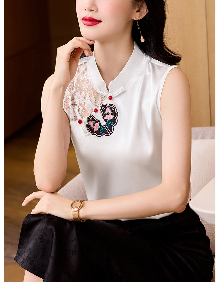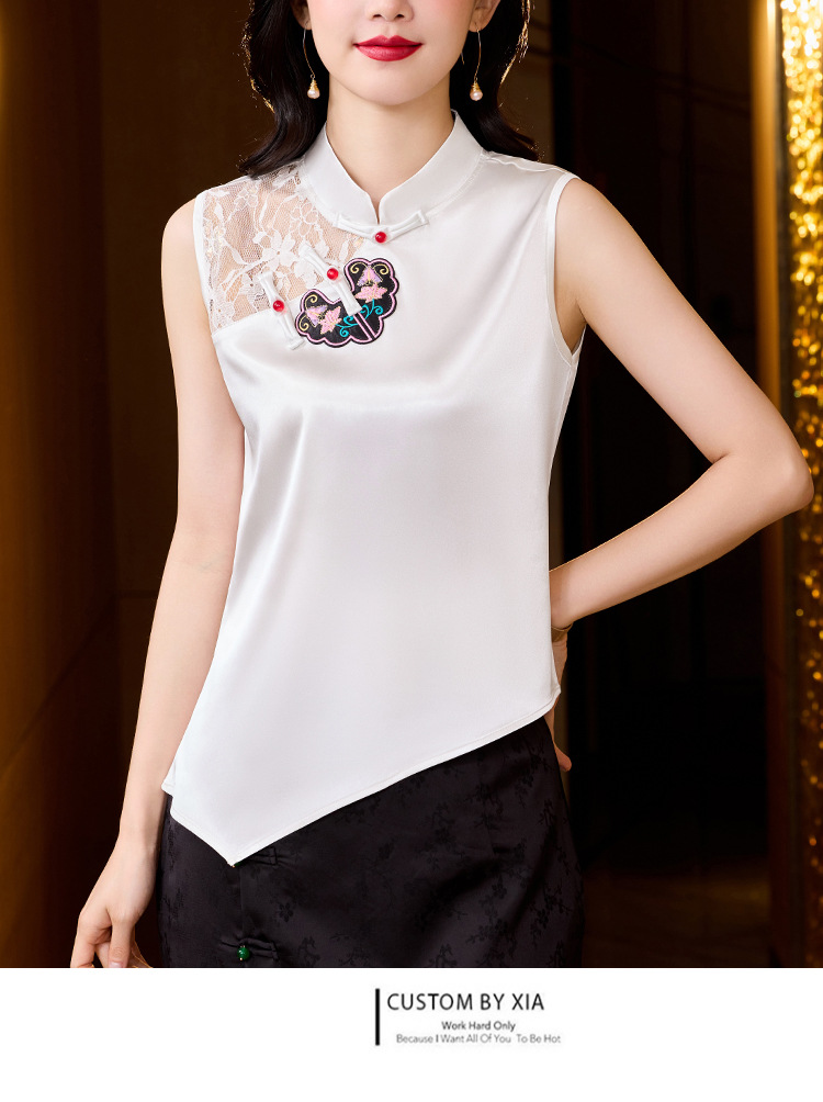 2025 봄 새로운 국가 스타일 레이스 버클 기질 새틴 조끼 슬림 기본 셔츠 도매