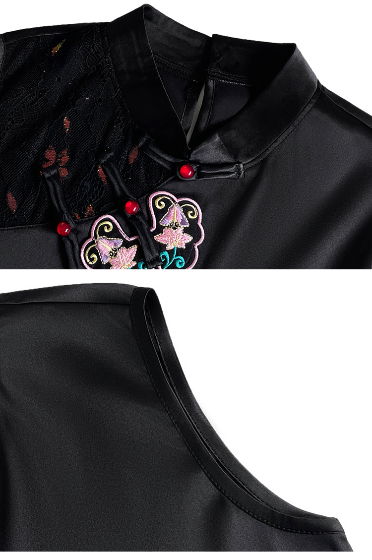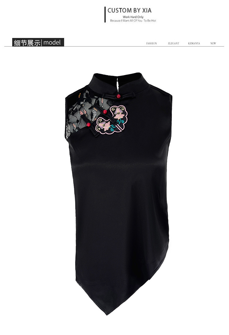 2025 봄 새로운 국가 스타일 레이스 버클 기질 새틴 조끼 슬림 기본 셔츠 도매스토어 가기