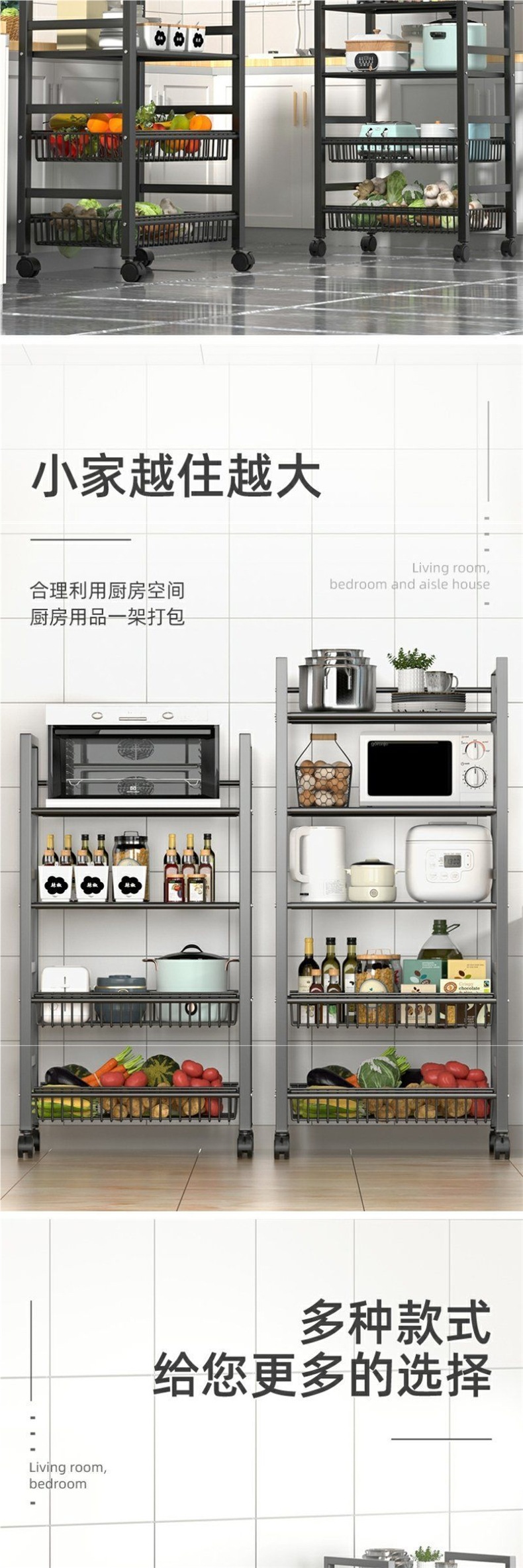 M1 주방 야채 바구니 바닥 서 저장 랙 야채, 과일 및 과일을 위한 다층 저장 선반