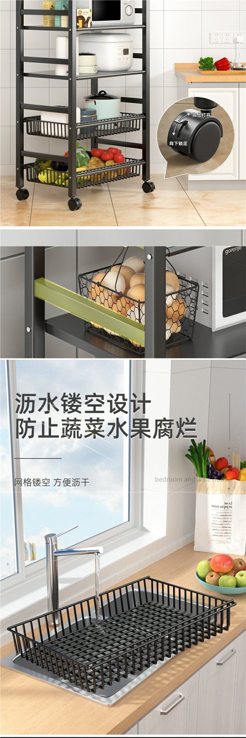 M1 주방 야채 바구니 바닥 서 저장 랙 야채, 과일 및 과일을 위한 다층 저장 선반스토어 가기