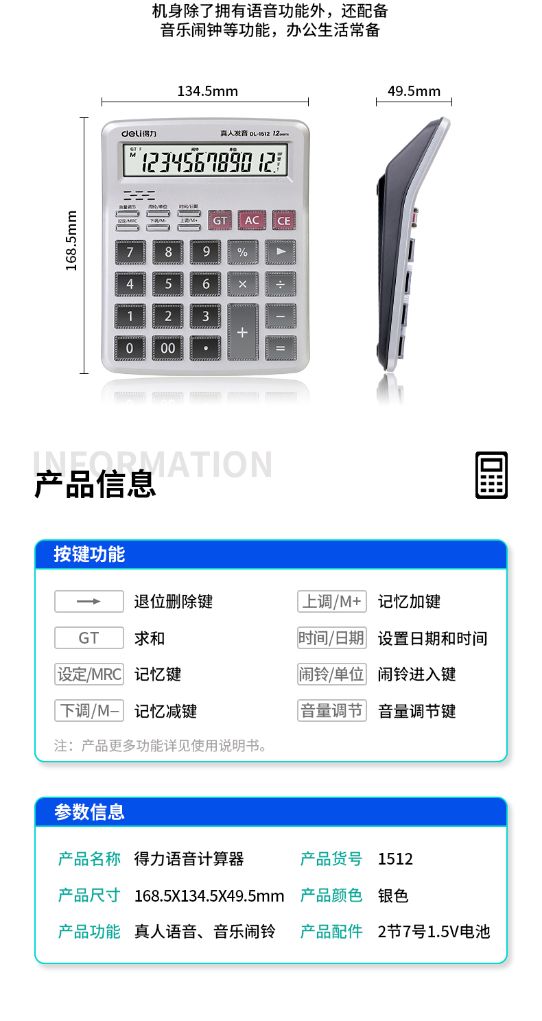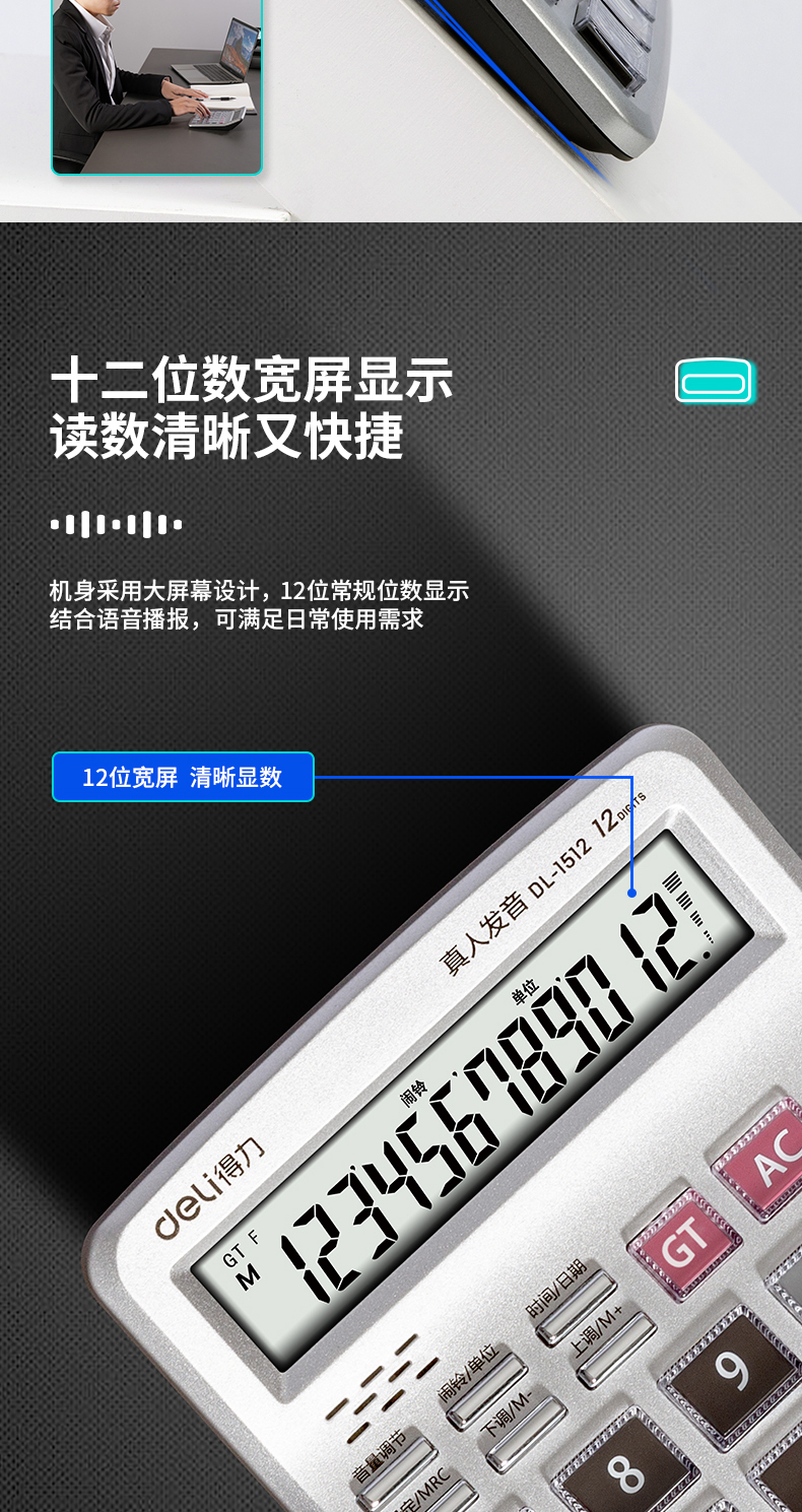 델리 1512 음성 계산기 음성 빅 버튼 크리스탈 금융 사무실 실제 사람 발음 12 자리 컴퓨터