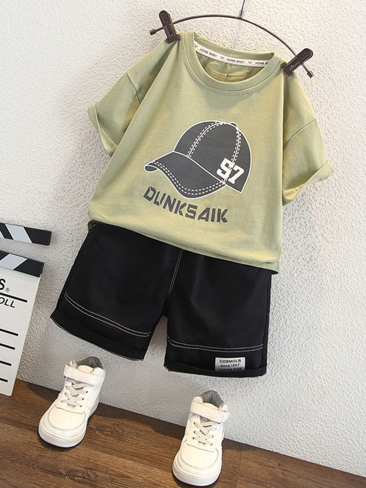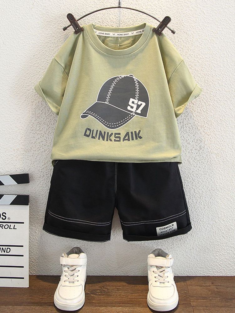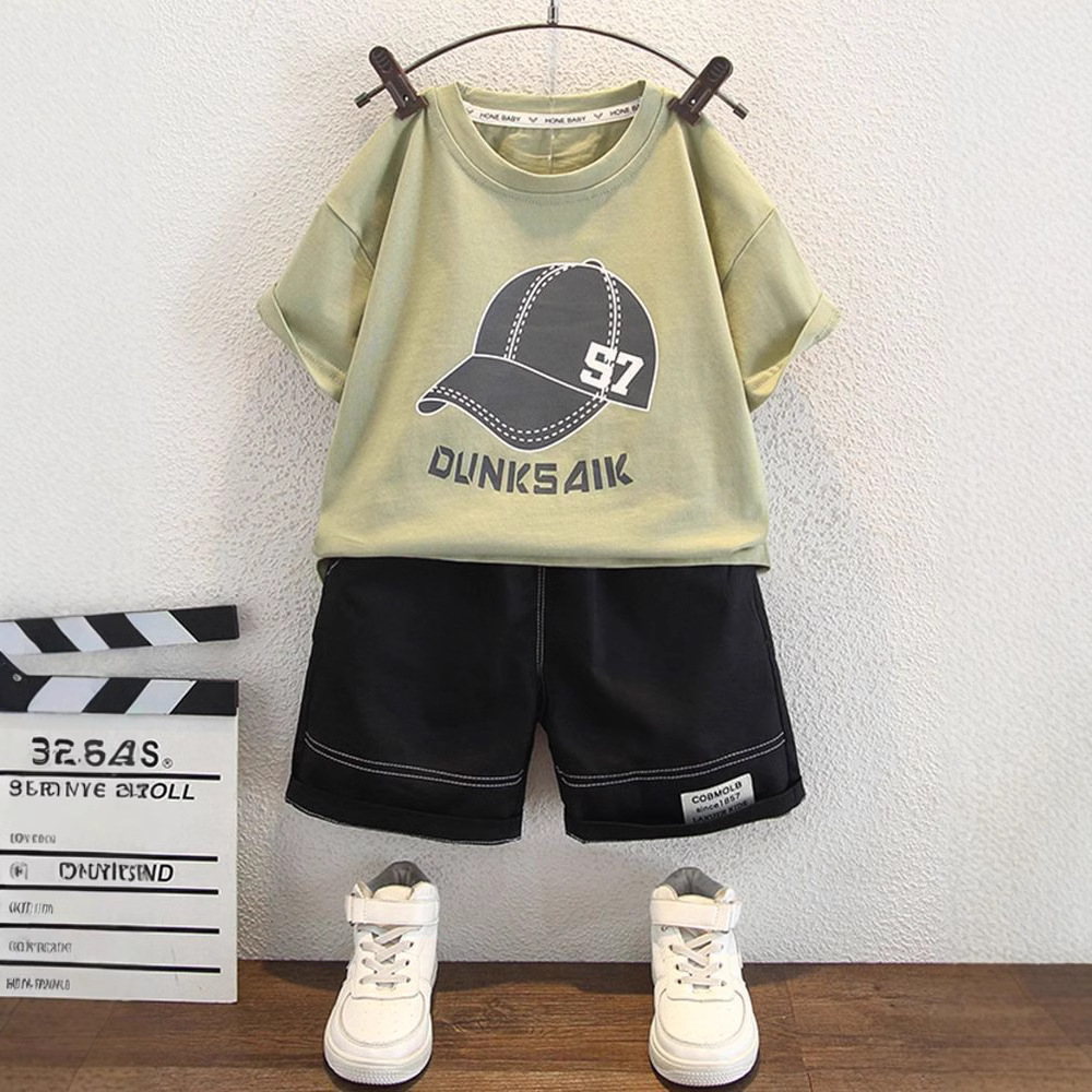 남자들의 트렌디 한 세트 여름 2025 새로운 서양식 어린이 반팔 반바지 한국 아기 패션 아동복스토어 가기