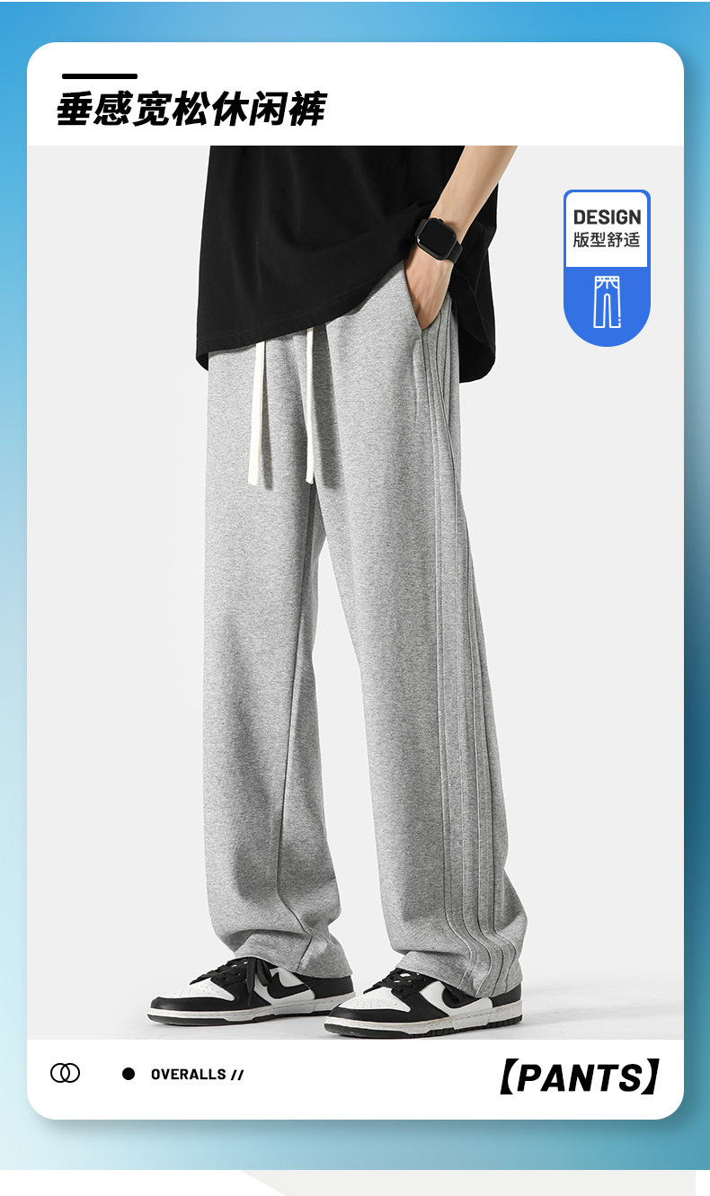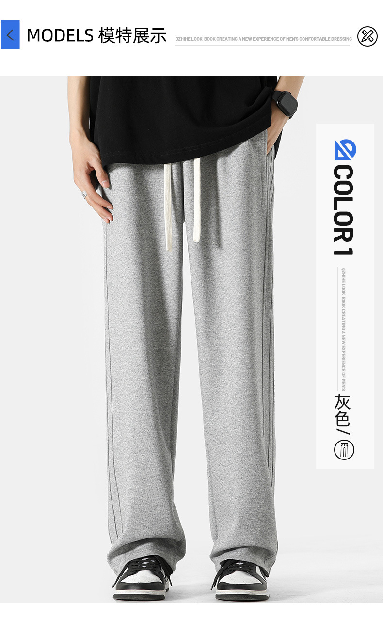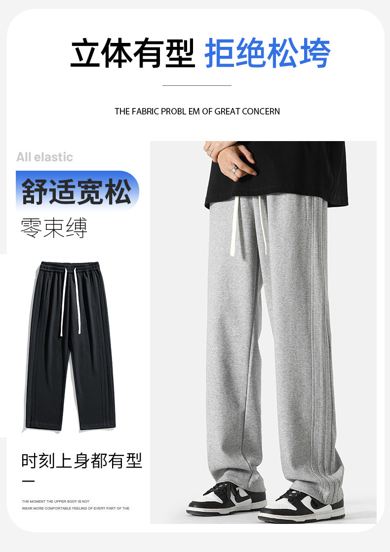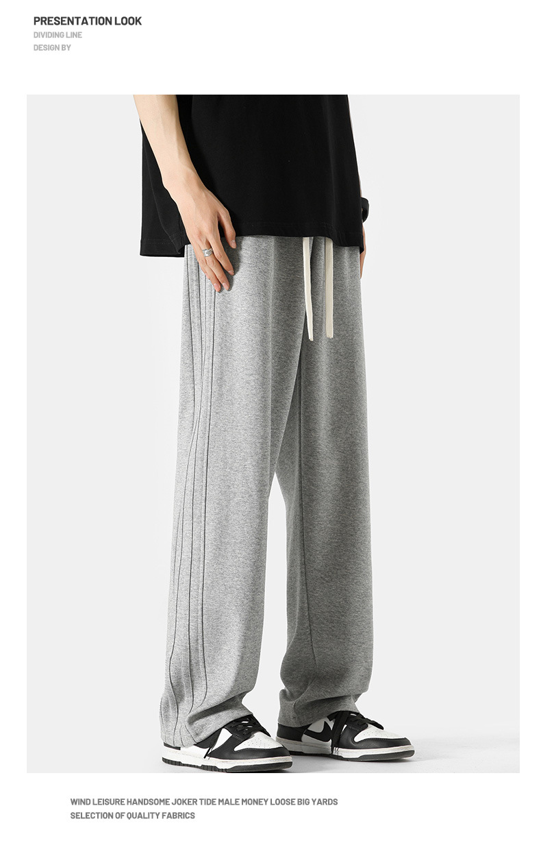 남성용 회색 바지 가을 겨울 기모 두꺼운 루즈핏 스트레이트 캐주얼 바지 청소년 와이드 레그 스포츠 바지스토어 가기