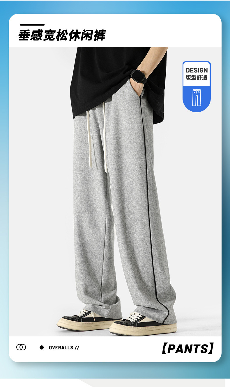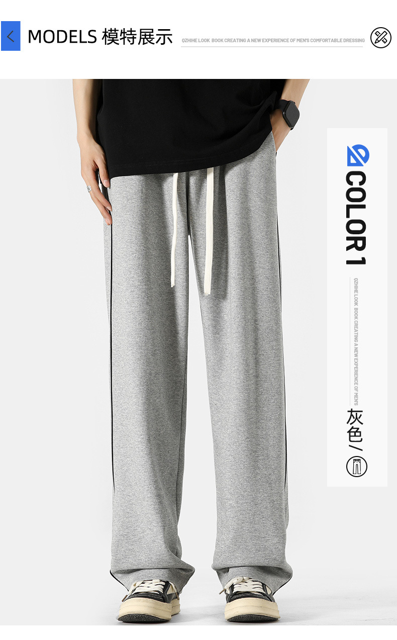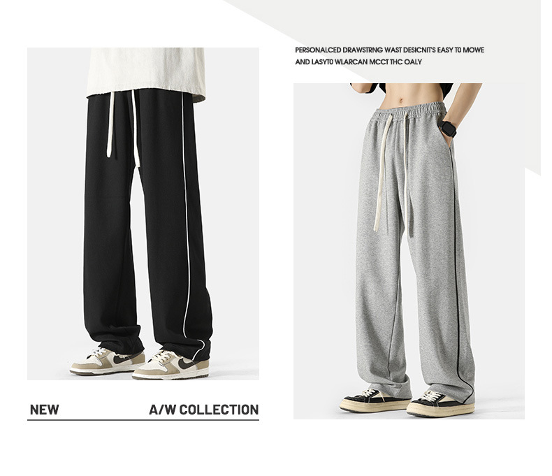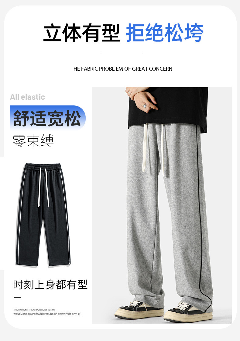 남성용 회색 바지 가을 겨울 기모 두꺼운 루즈핏 스트레이트 캐주얼 바지 청소년 와이드 레그 스포츠 바지스토어 가기
