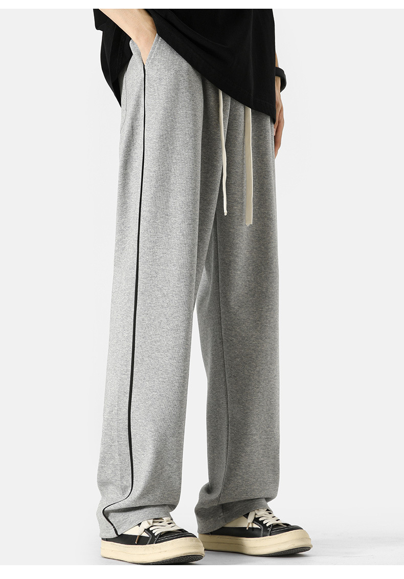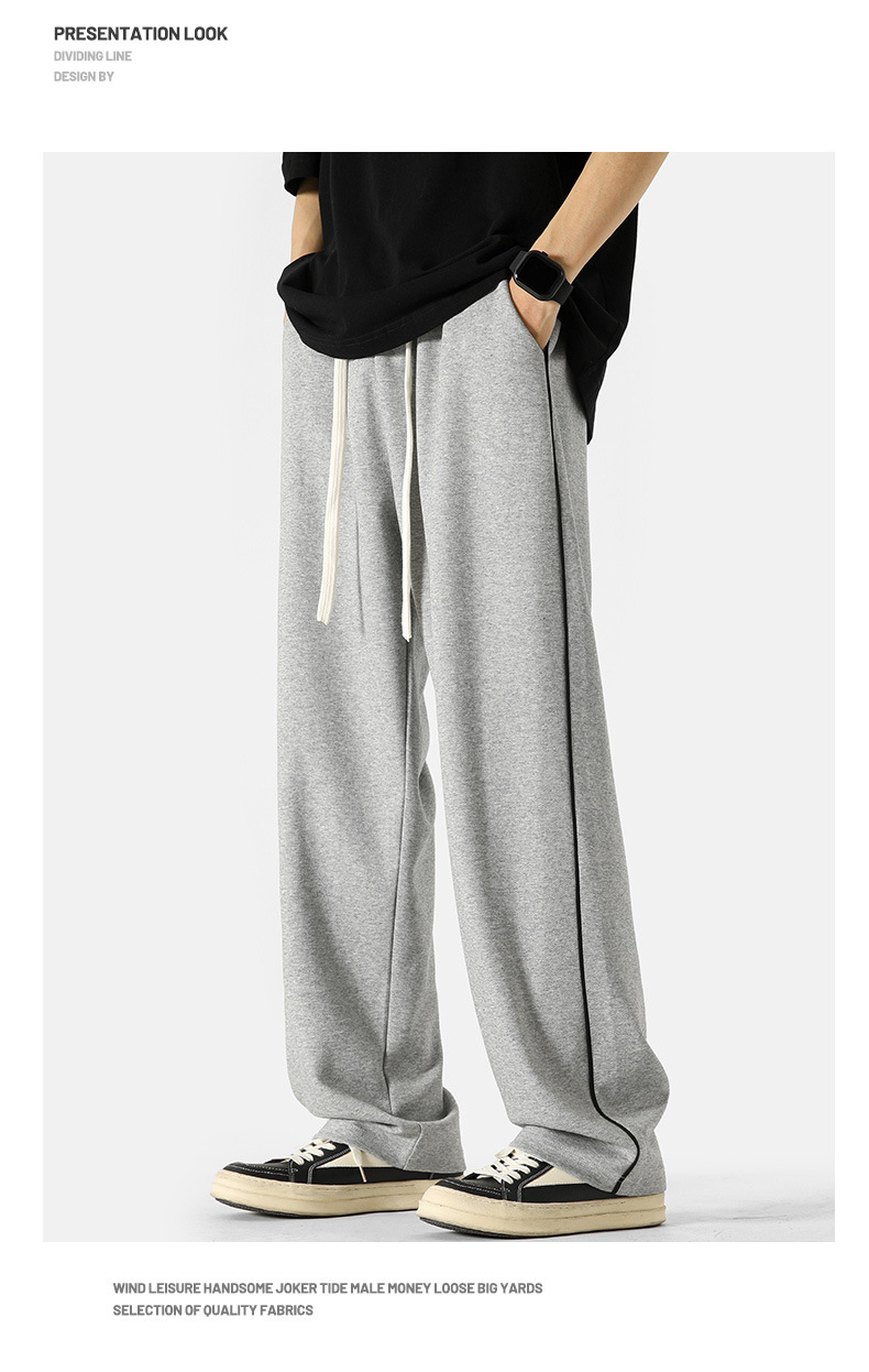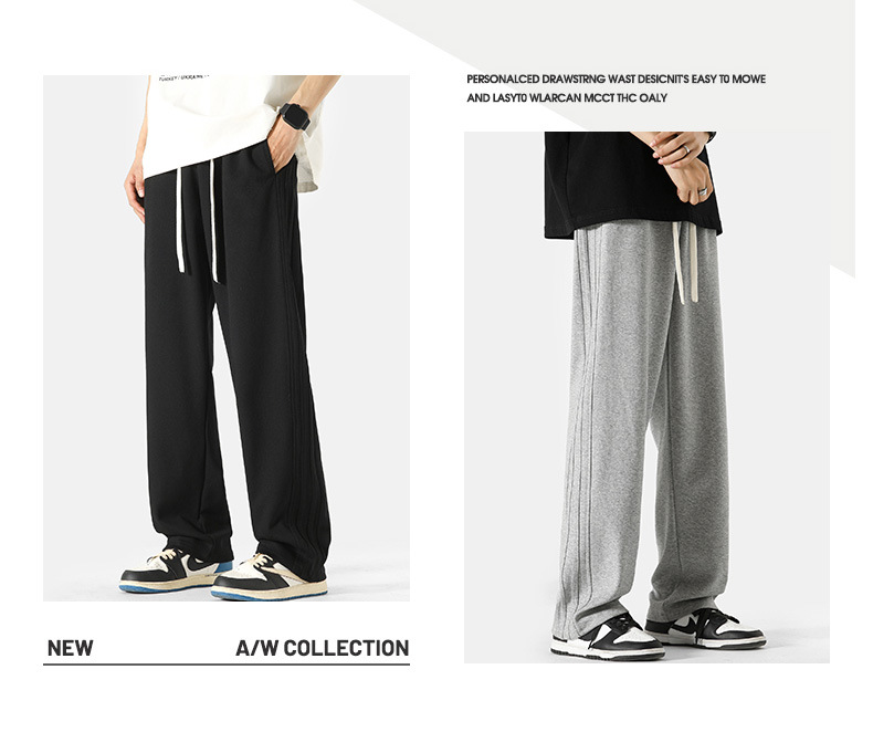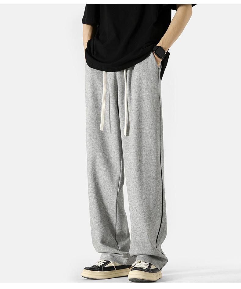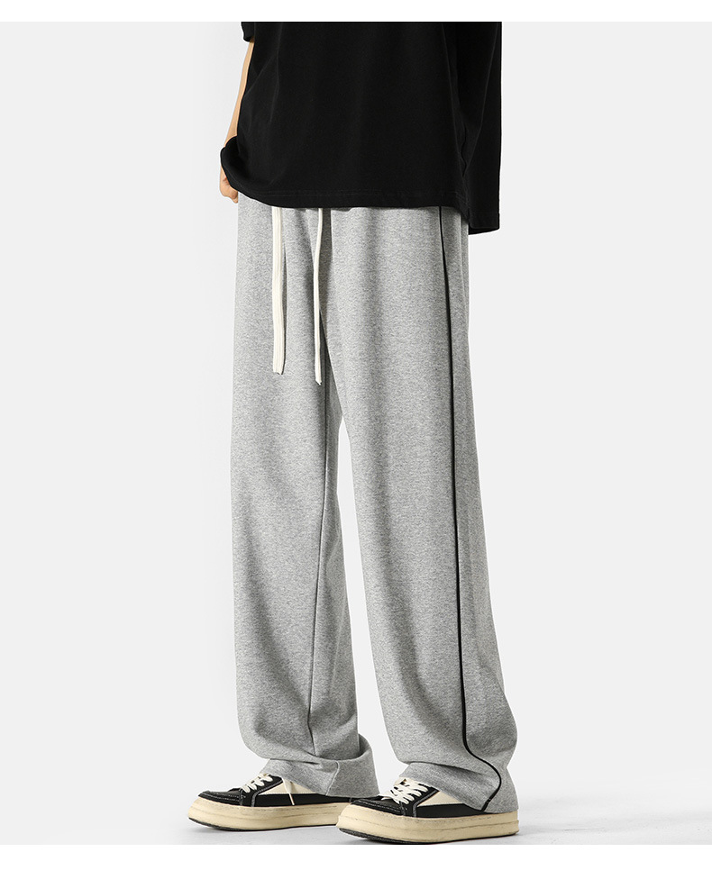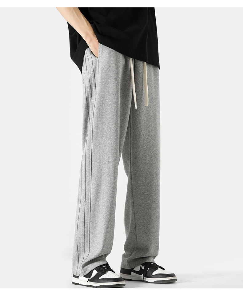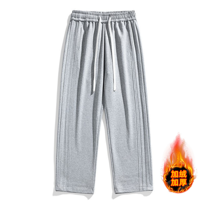 남성용 회색 바지 가을 겨울 기모 두꺼운 루즈핏 스트레이트 캐주얼 바지 청소년 와이드 레그 스포츠 바지