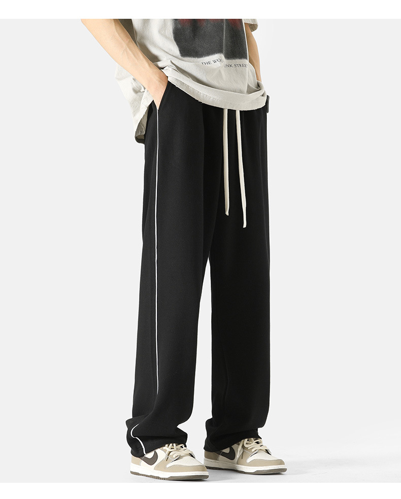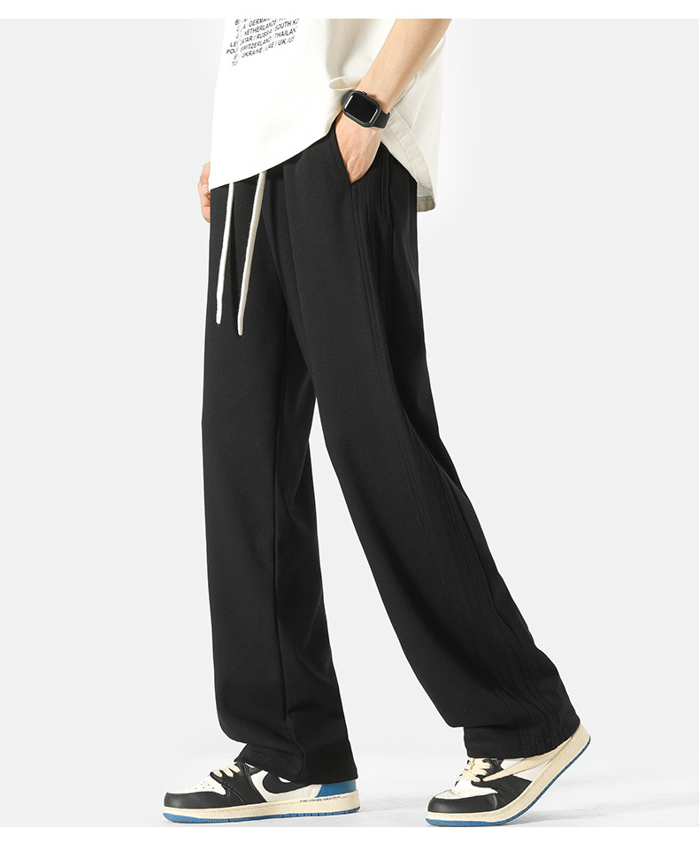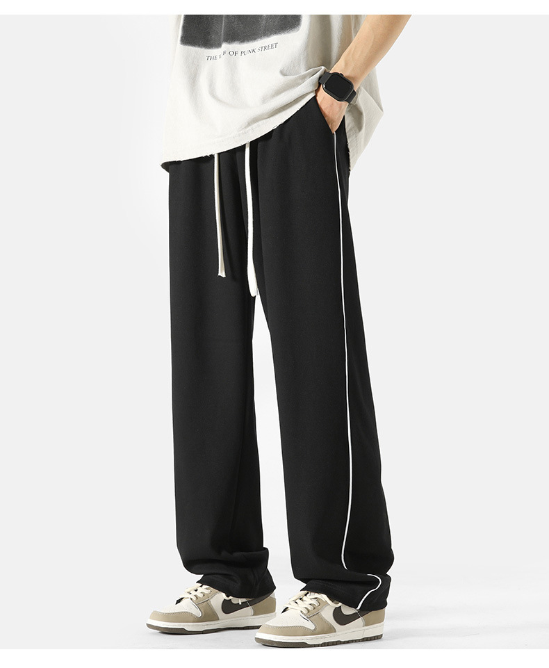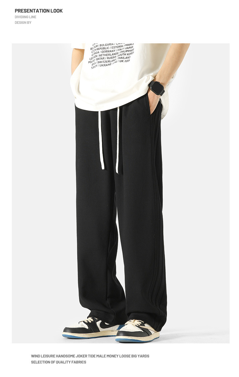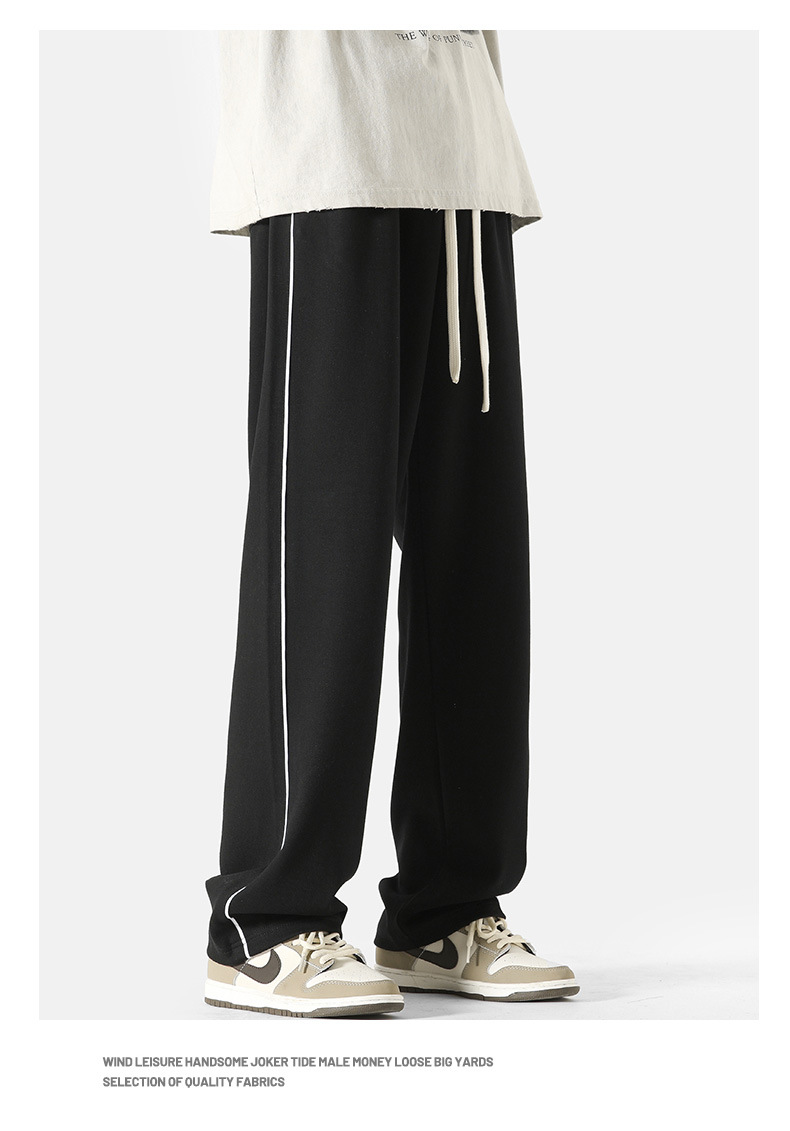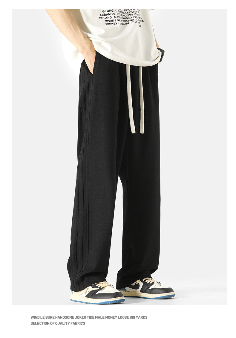 남성용 회색 바지 가을 겨울 기모 두꺼운 루즈핏 스트레이트 캐주얼 바지 청소년 와이드 레그 스포츠 바지