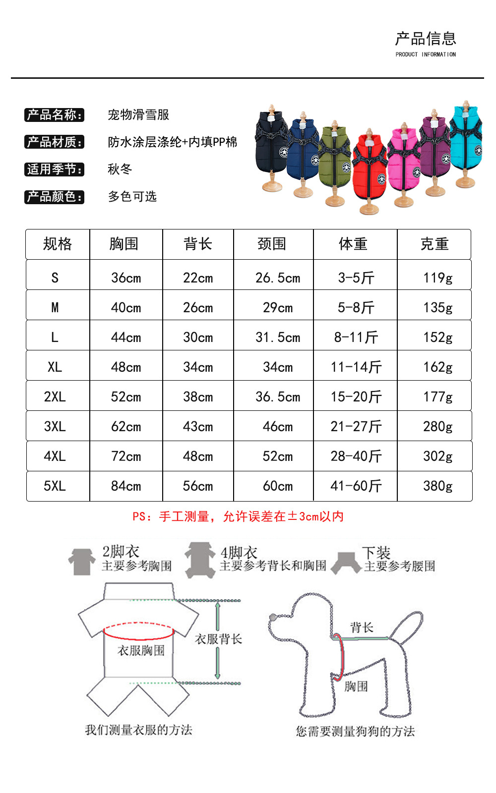 • 3XL (가슴둘레 62CM, 권장체중 10.5-13.5kg )
