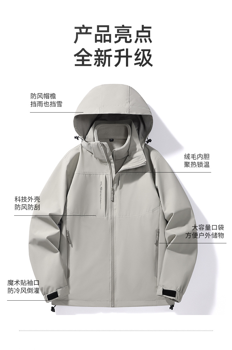 2024 새로운 스타일 러쉬 수트 3 대 1 여성 기모 방풍 방수 코트 재킷 캐주얼 웨어 등산 세트스토어 가기