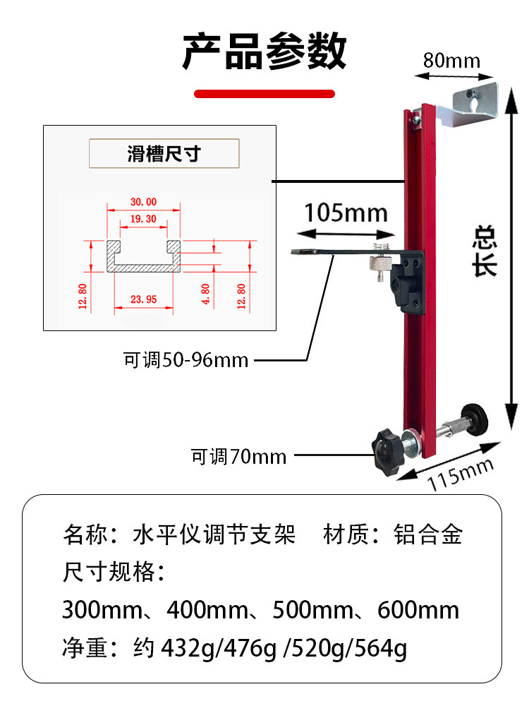 • 경량 레벨 브래킷[300mm] + 수평 버블 및 조정 헤드