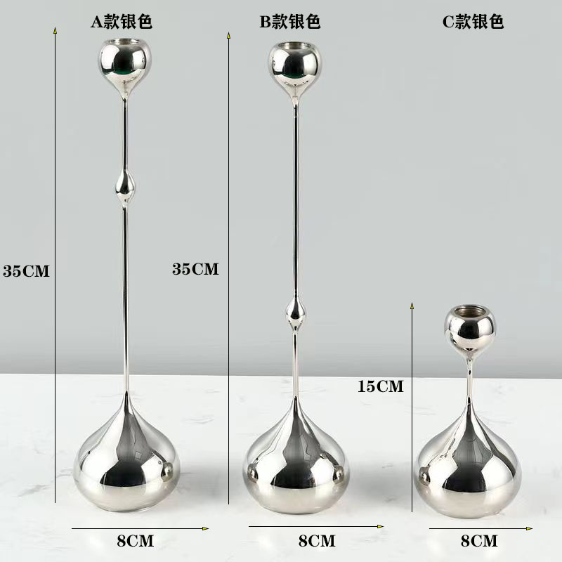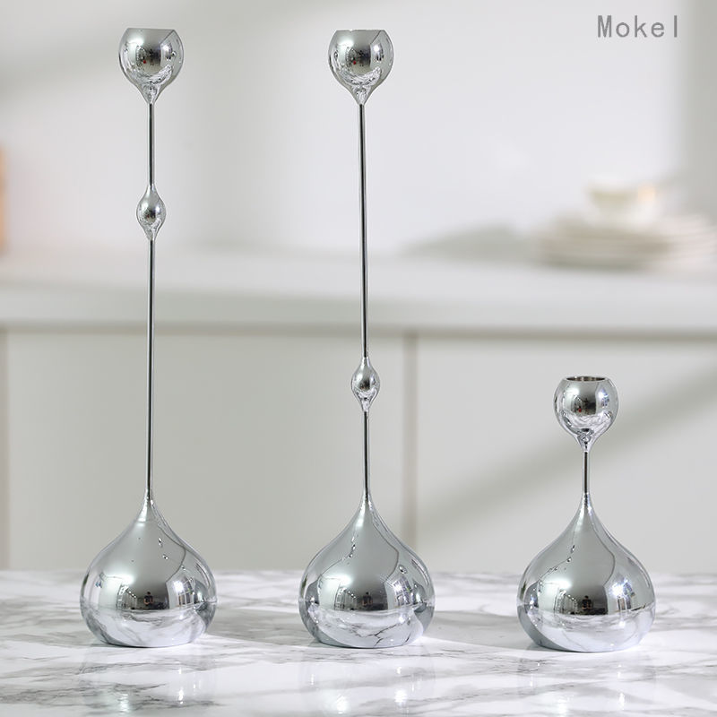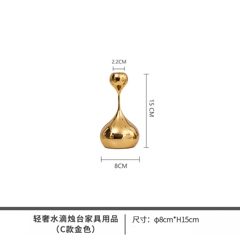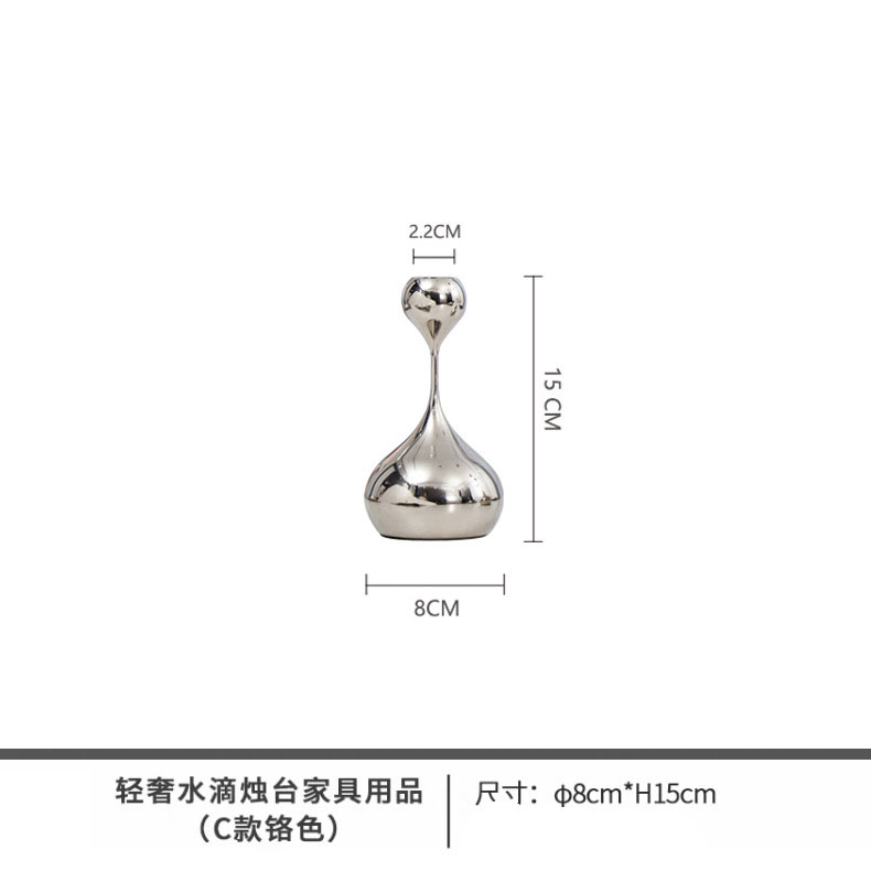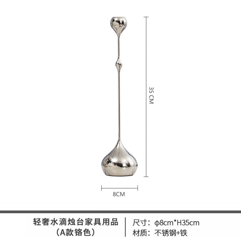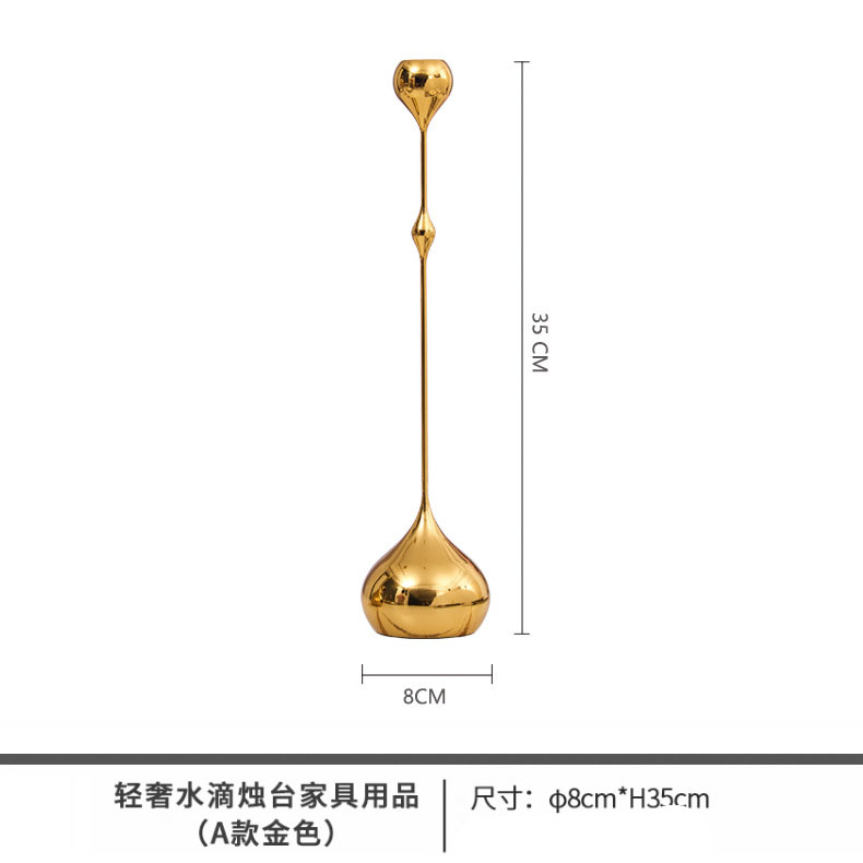 북유럽 낭만적 인 분위기의 물 드롭 캔들 홀더 금속 장식품 캔들 홀더 웨딩 축하 모델 하우스 홈 장식