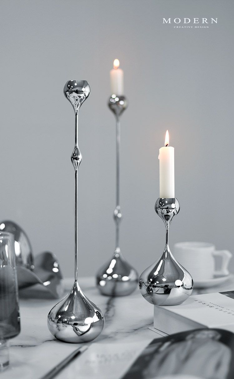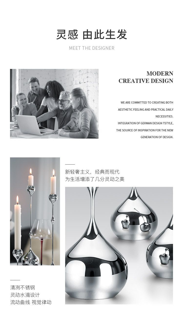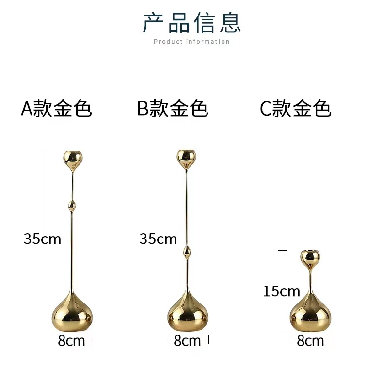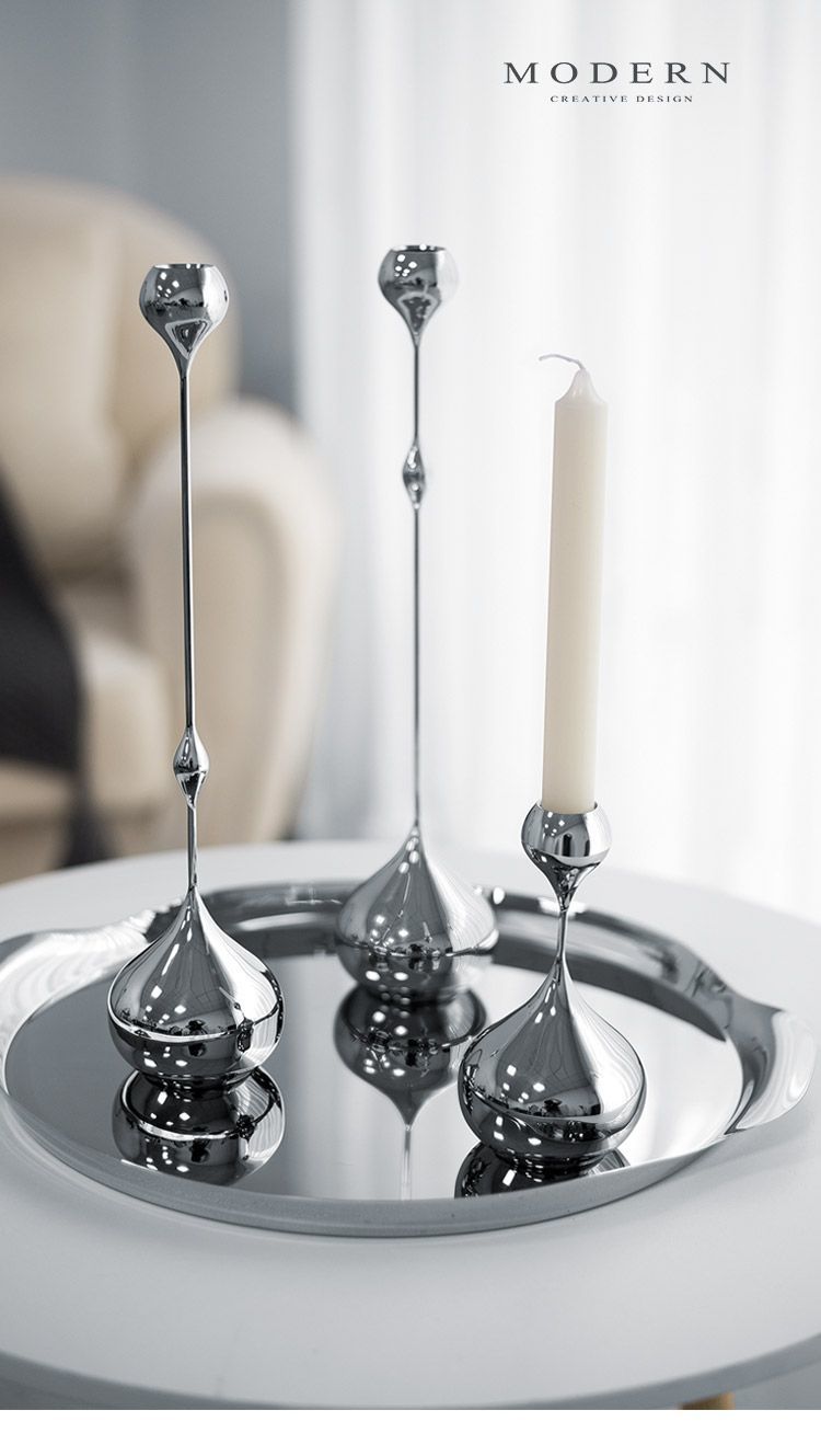 북유럽 낭만적 인 분위기의 물 드롭 캔들 홀더 금속 장식품 캔들 홀더 웨딩 축하 모델 하우스 홈 장식