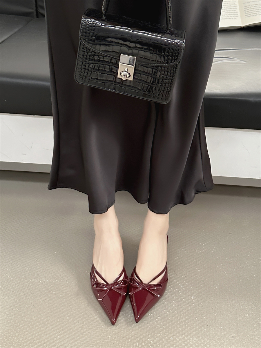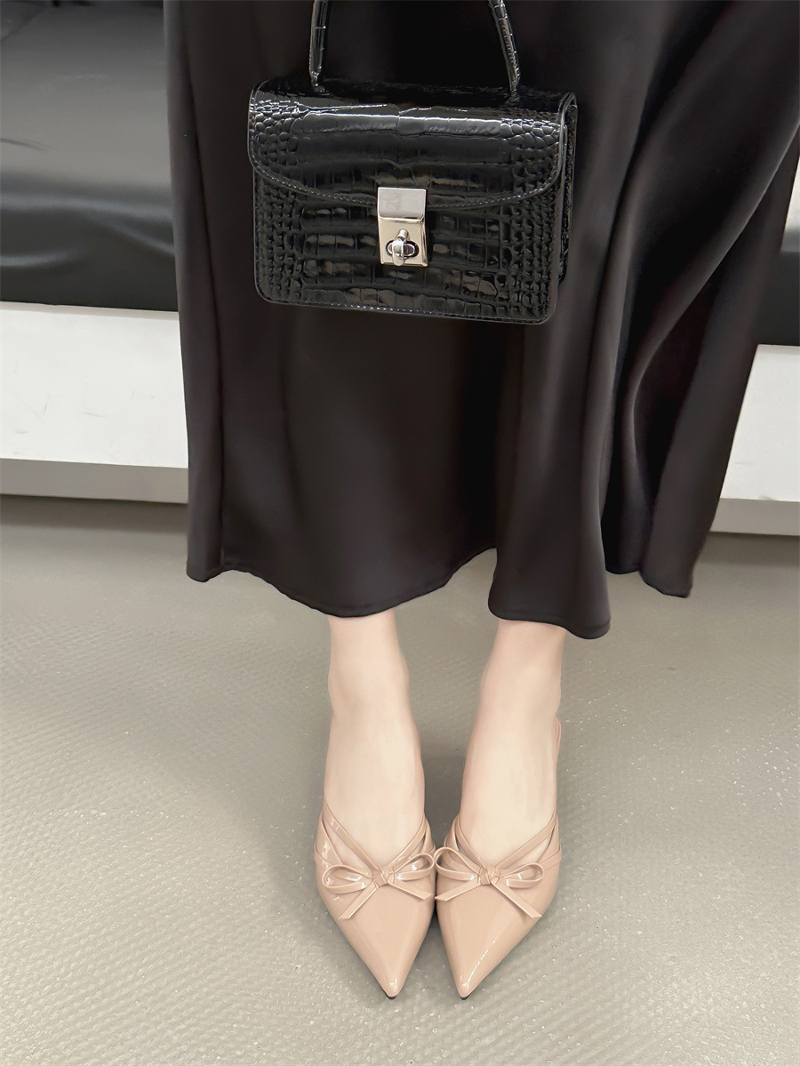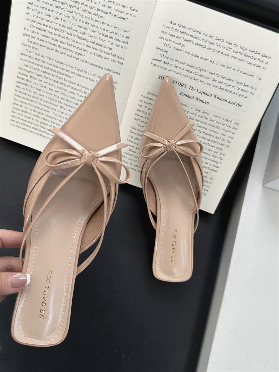 얇은 힐 보우 레트로 스퀘어 토 바오 터우 하프 슬리퍼 여성 2025 뉴 스타일 아우터 착용 하이힐 뮬러 신발 게으른 여성 신발