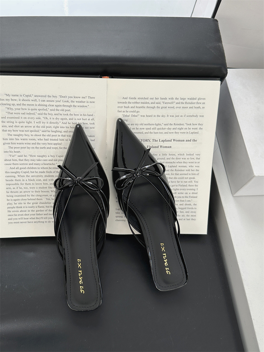 얇은 힐 보우 레트로 스퀘어 토 바오 터우 하프 슬리퍼 여성 2025 뉴 스타일 아우터 착용 하이힐 뮬러 신발 게으른 여성 신발스토어 가기