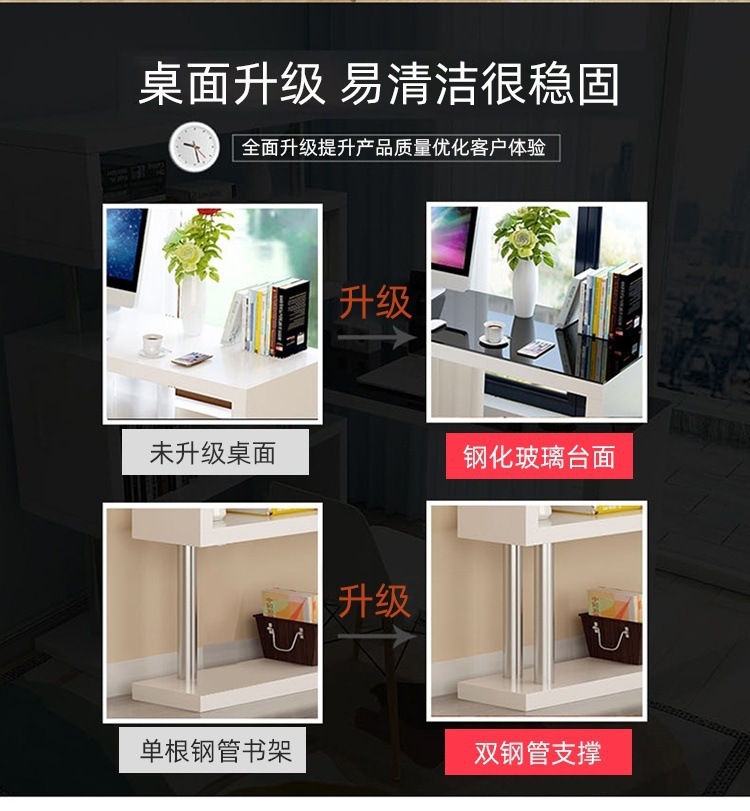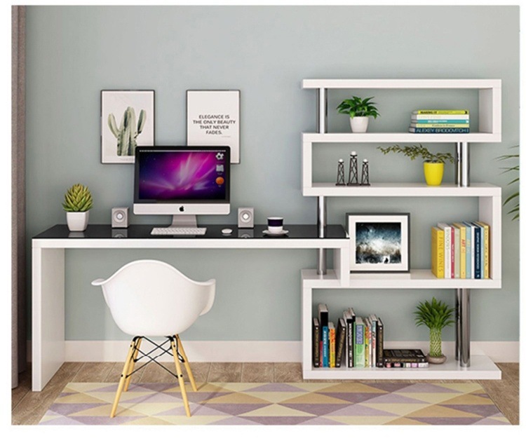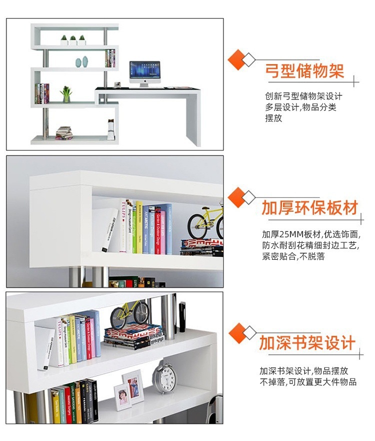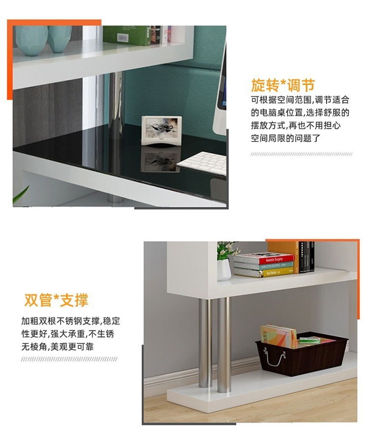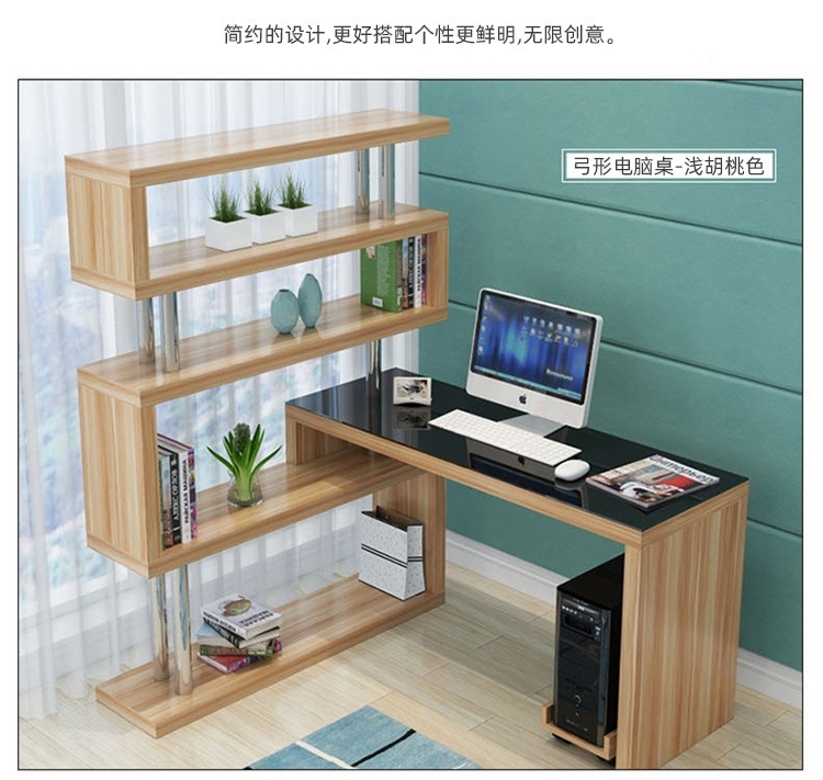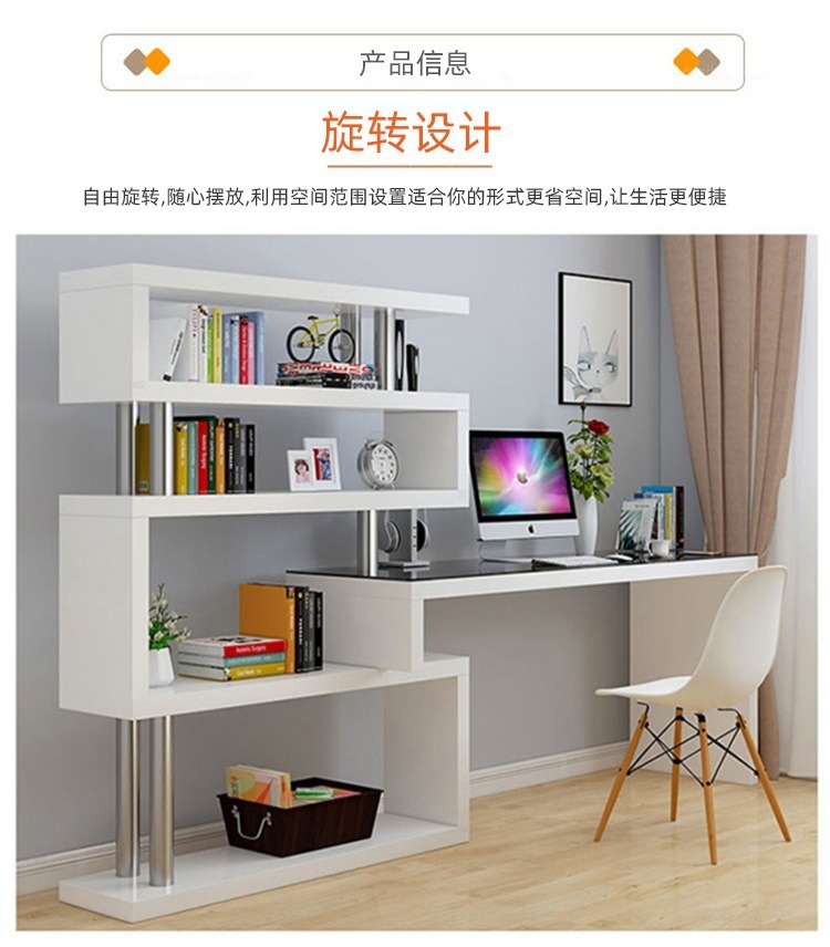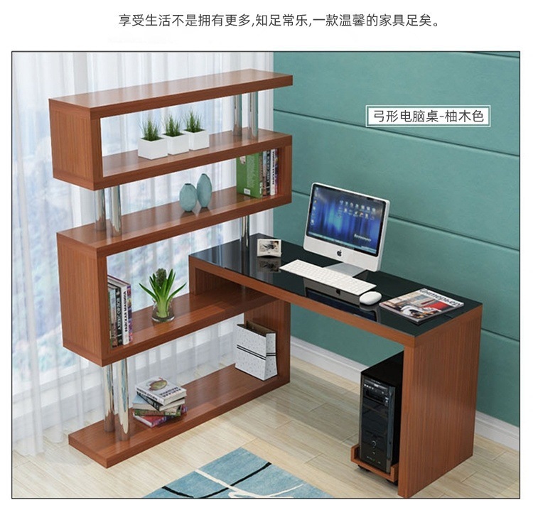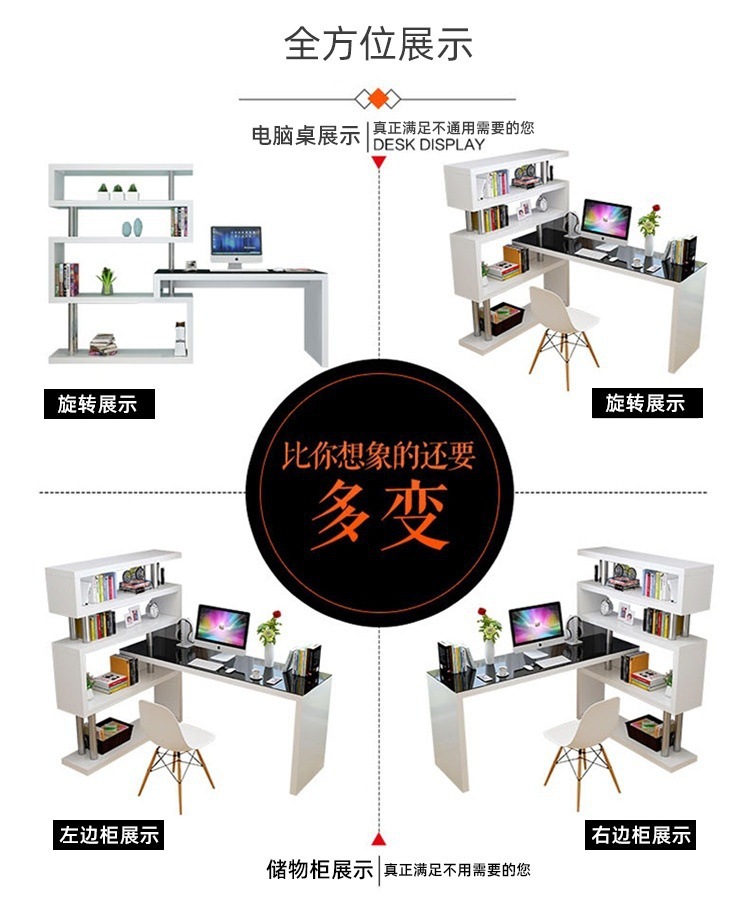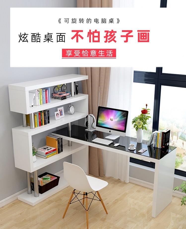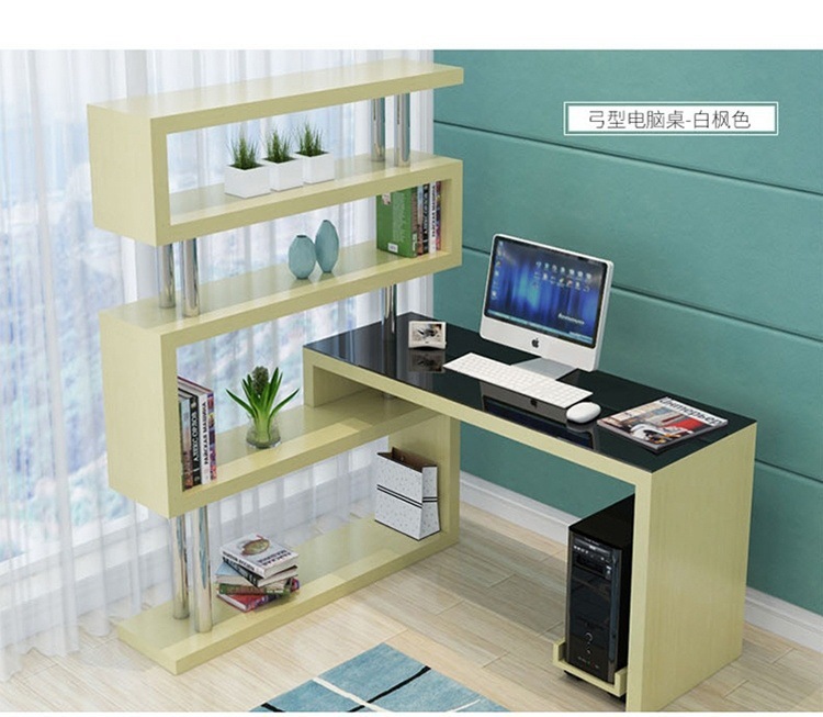 회전 컴퓨터 책상 데스크탑 가정용 책상 간단한 책장 침실 테이블 책장 조합 쓰기 통합 코너 테이블