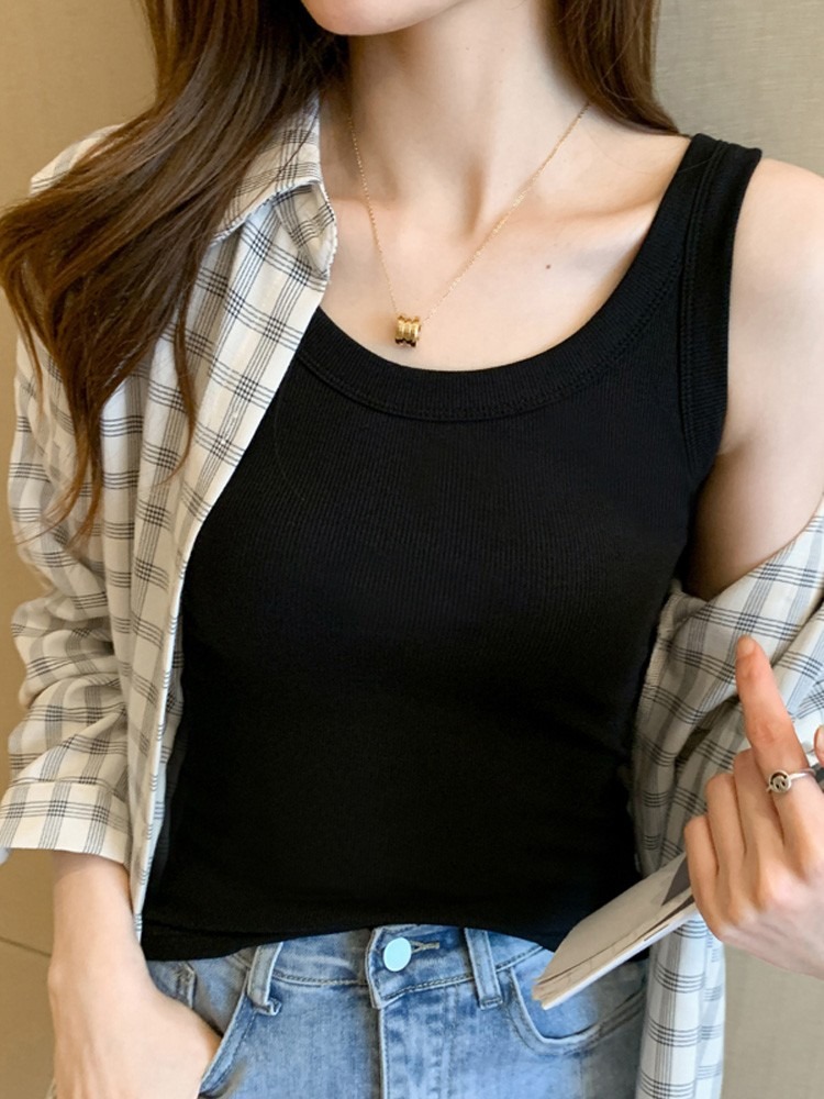 올 매치 안티 슬립 민소매 얇은 바닥 캐미솔 여성의 여름 스트레치 슬림 핏 슬리밍 한국식 외관 착용