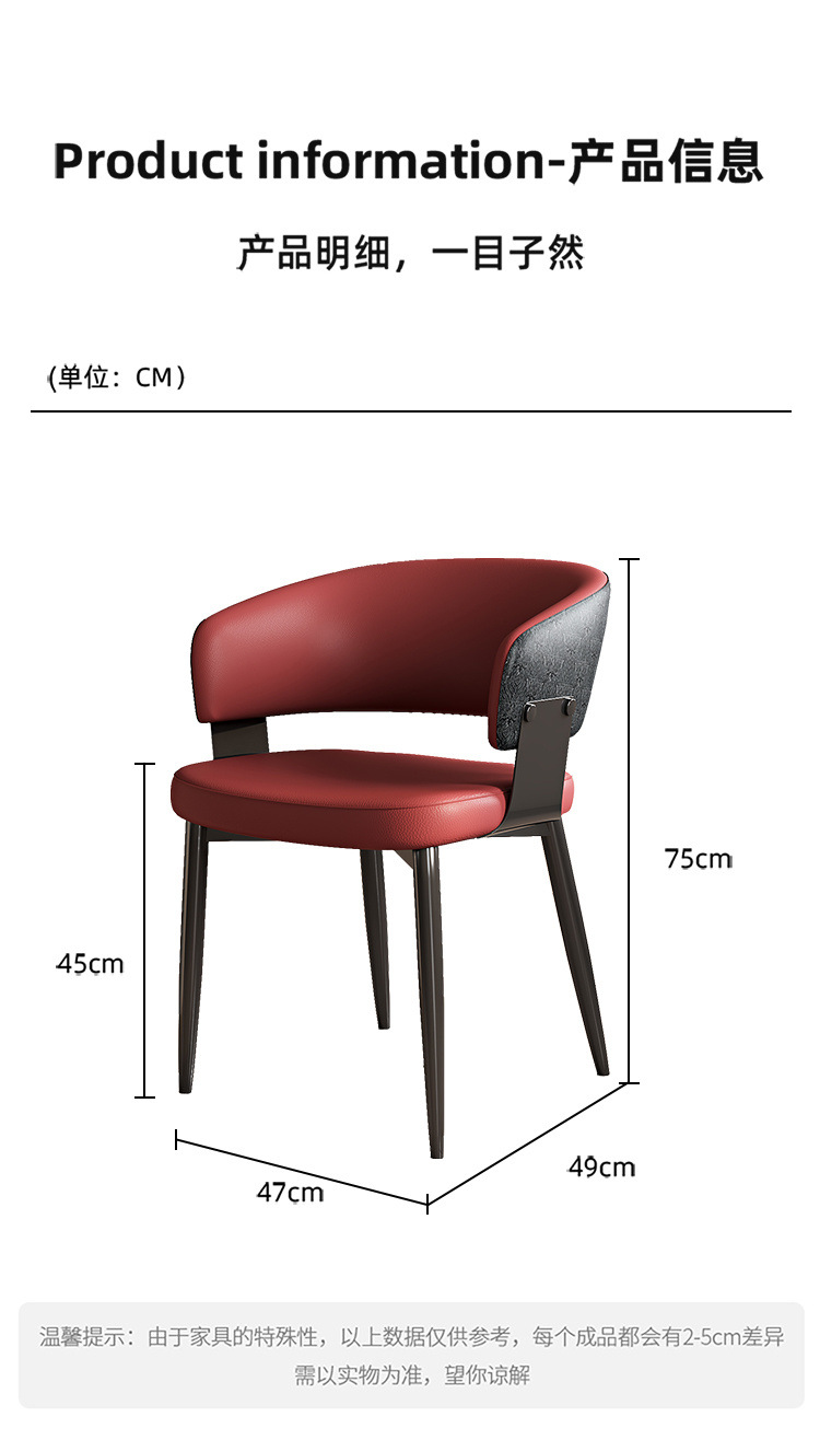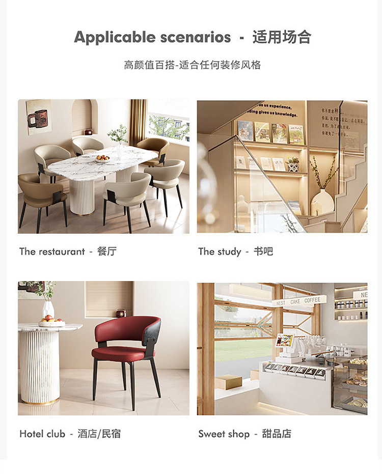 이탈리아 스타일 간단한 현대 의자 홈 노르딕 스타일 호텔 라이트 럭셔리 다이닝 의자 등받이 의자 창조적 인 레스토랑 의자