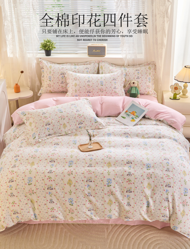조각 세트 순수한면 침구 이불 커버 봄 가을 겨울 침대 시트 침대 커버 학생 기숙사 3 조각 세트스토어 가기