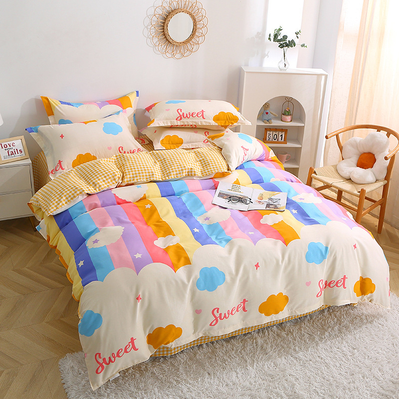 조각 세트 순수한면 침구 이불 커버 봄 가을 겨울 침대 시트 침대 커버 학생 기숙사 3 조각 세트