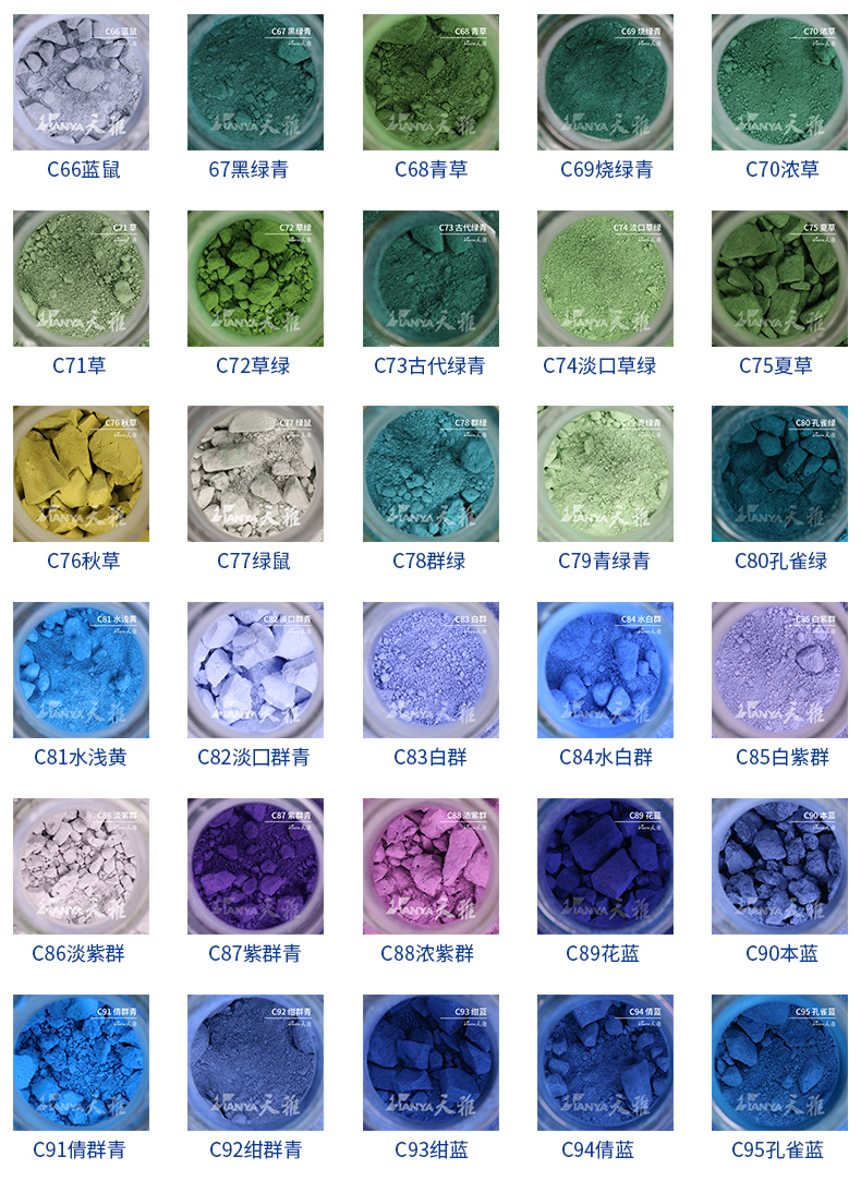 티아냐 미네랄 안료 중국 회화 록 컬러 중색 조각 벽화 탄페라 슈퍼 미세 물 건조 분말 C143 그린 그린스토어 가기