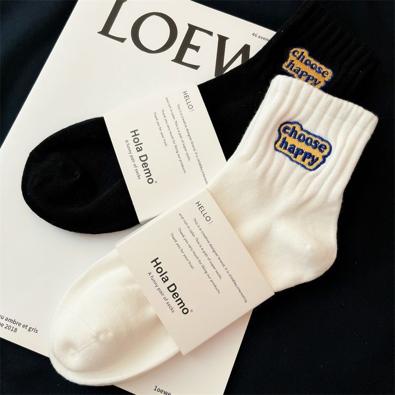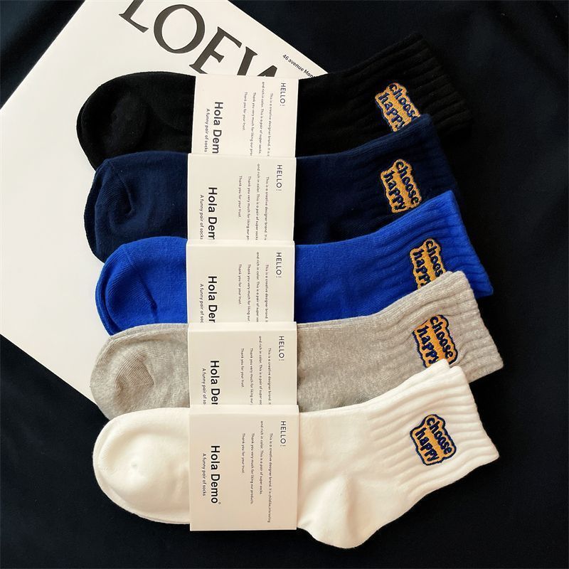 양말 유니섹스 흑백 중간 길이 양말 4 시즌 솔리드 컬러 스포츠 양말 땀 흡수 탈취제 Ins 트렌디 한 남자 스포츠 롱