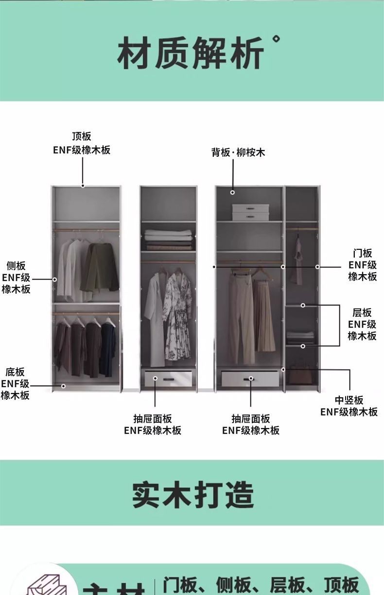 단단한 나무 오크 옷장 홈 침실 현대 간단한 흰색 평면 문 마스터 침실 옷장 조립 어린이 작은 캐비닛