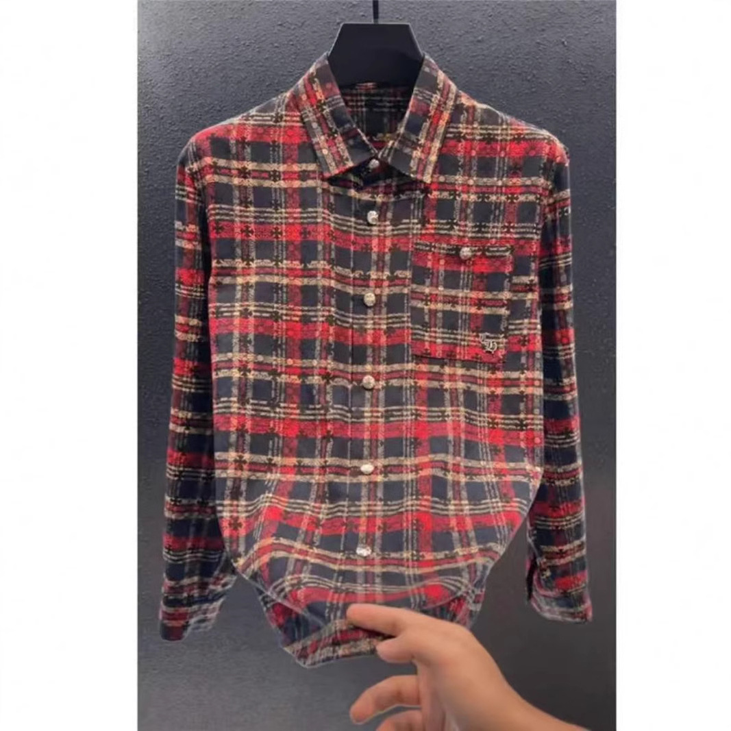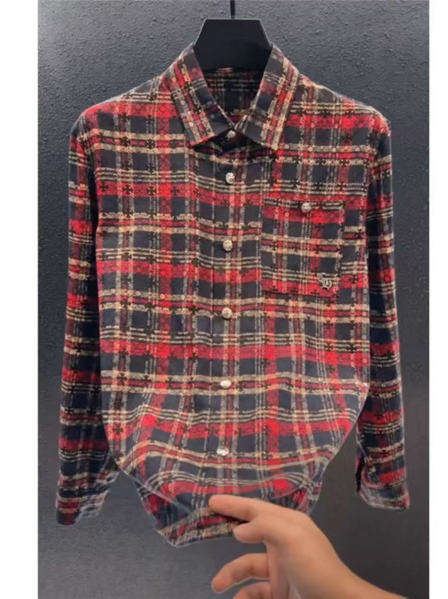하이 엔드 봄 새로운 긴팔 셔츠 남자의 패션 느슨한 유행 간단한 격자 무늬 캐주얼 탑 재킷
