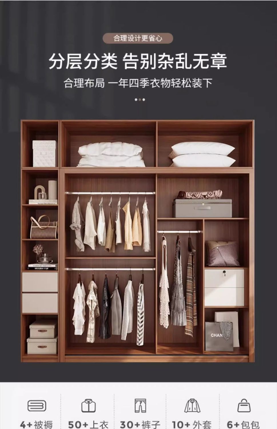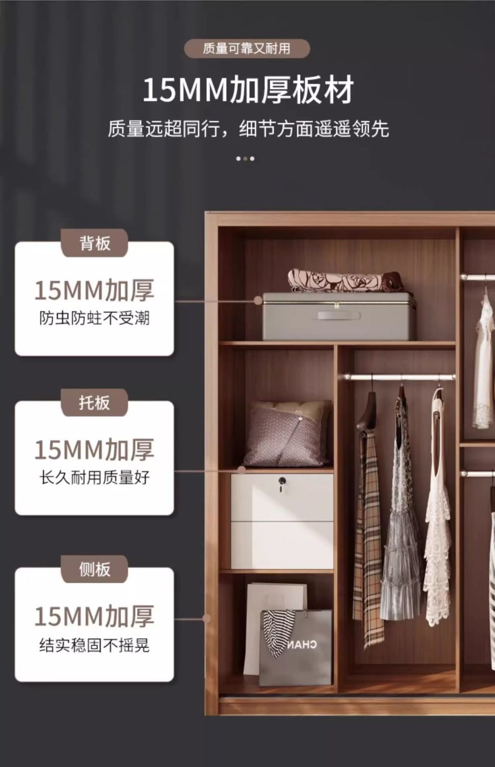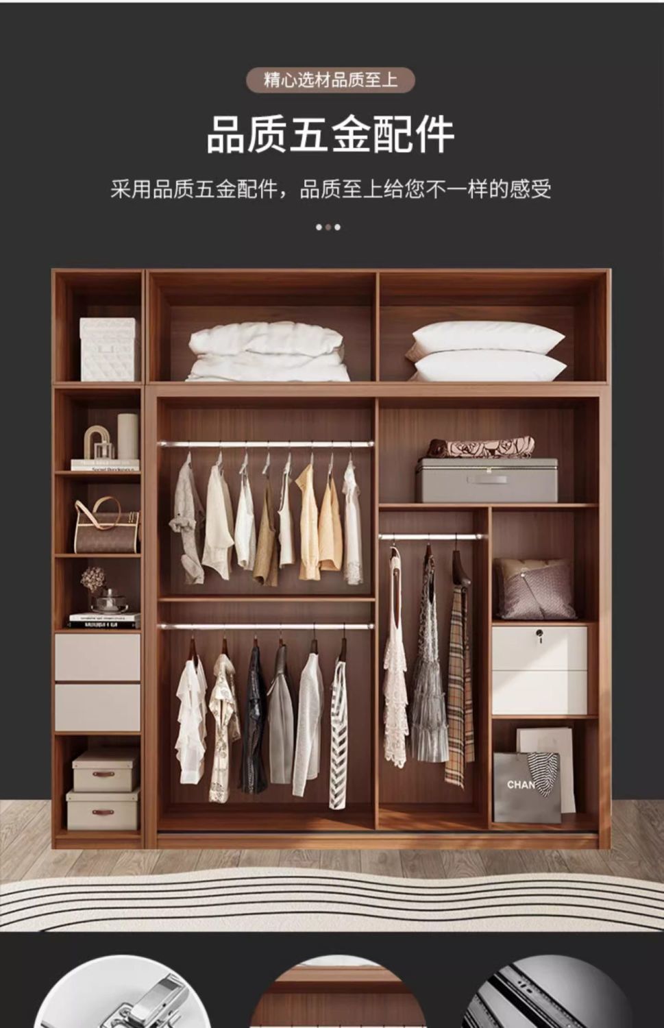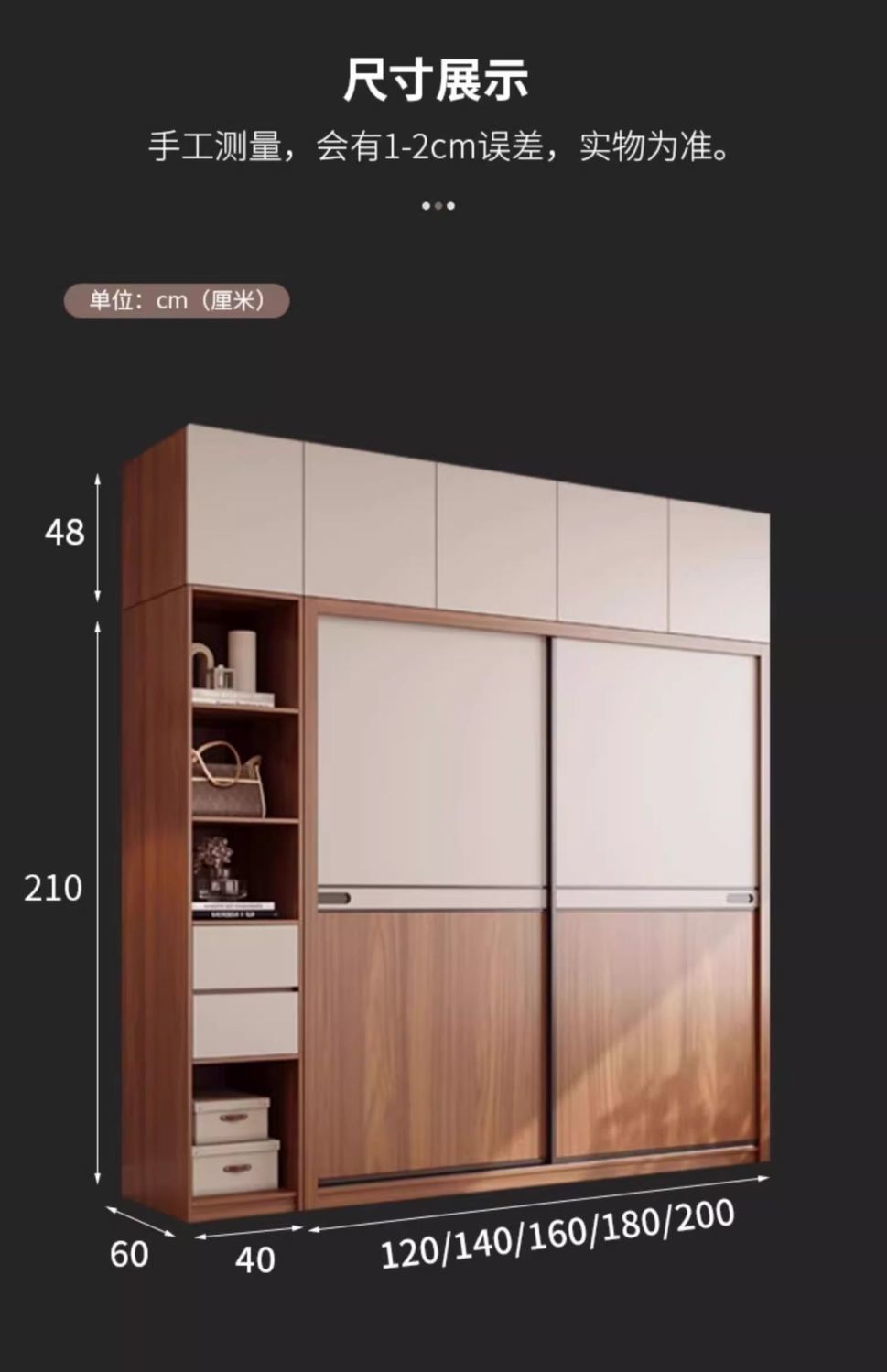 • 2.0m 옷장 + 측면 캐비닛 단단한 나무 다층 보드