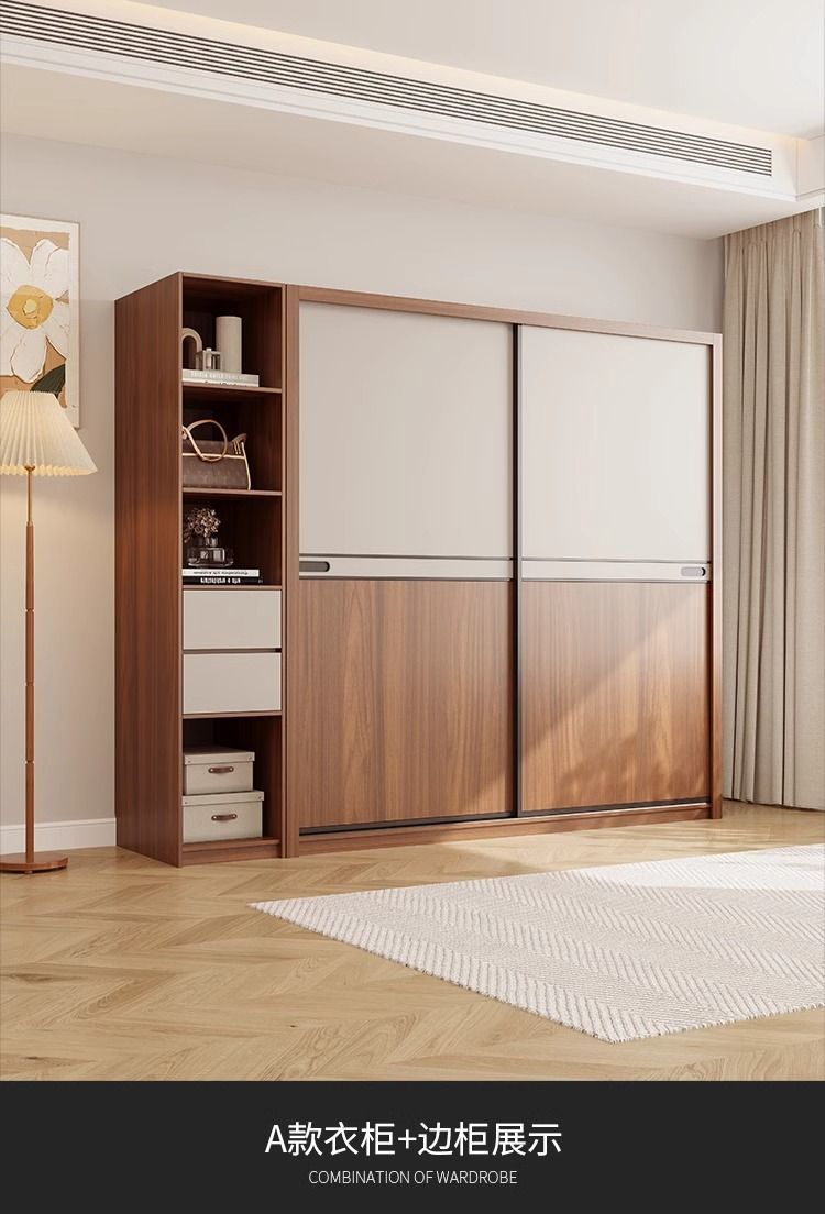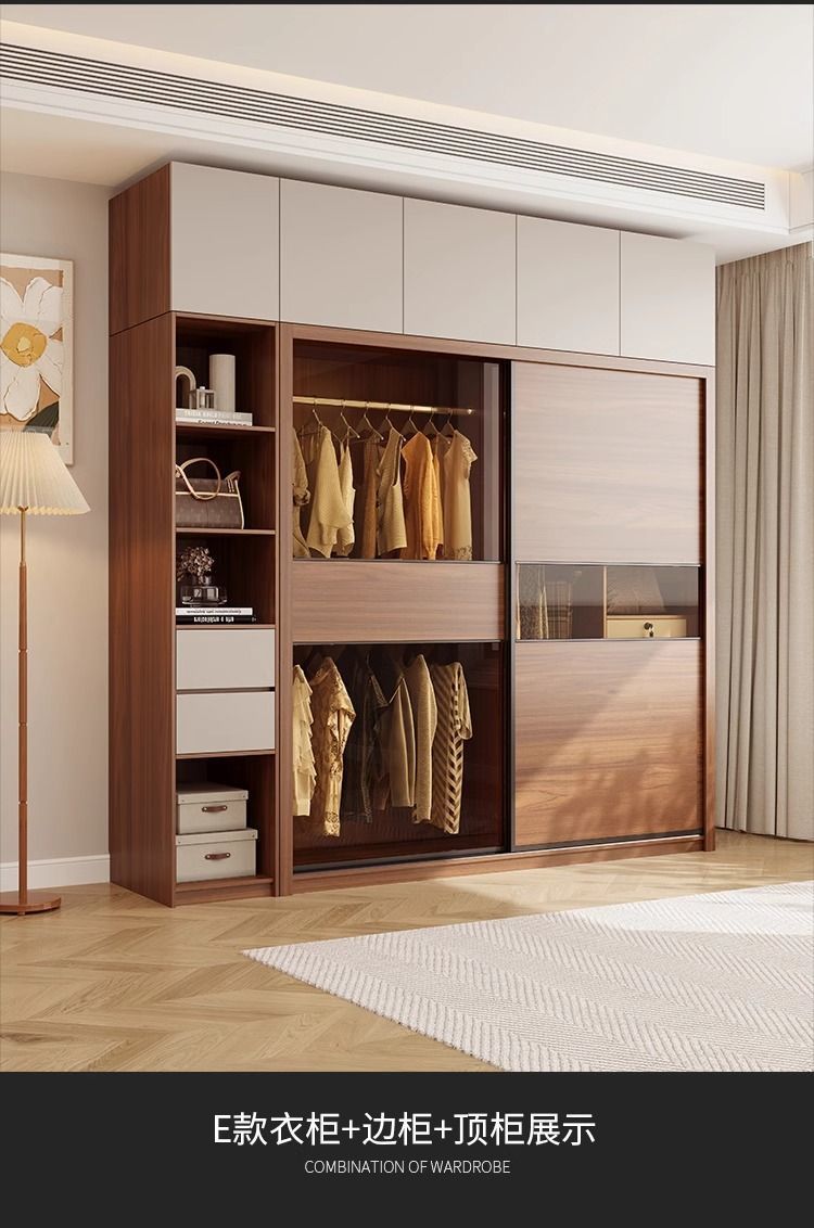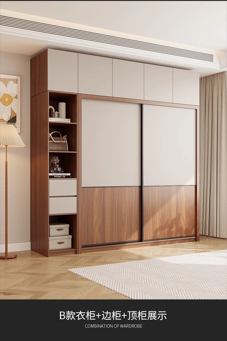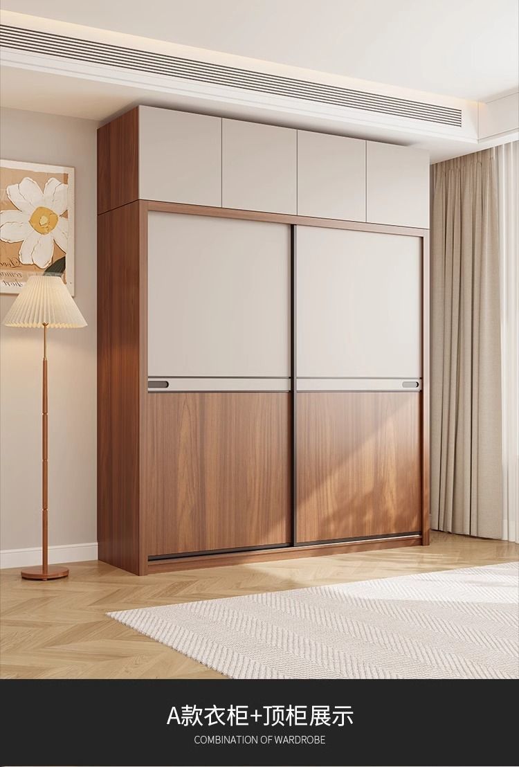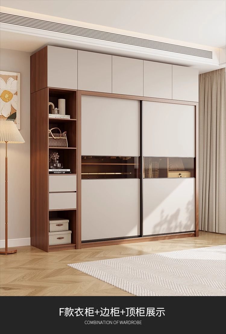 단단한 나무 다층 보드 빛 고급 슬라이딩 도어 슬라이딩 도어 옷장 가정용 침실 현대 간단한 완성 된 생태 보드 옷장스토어 가기