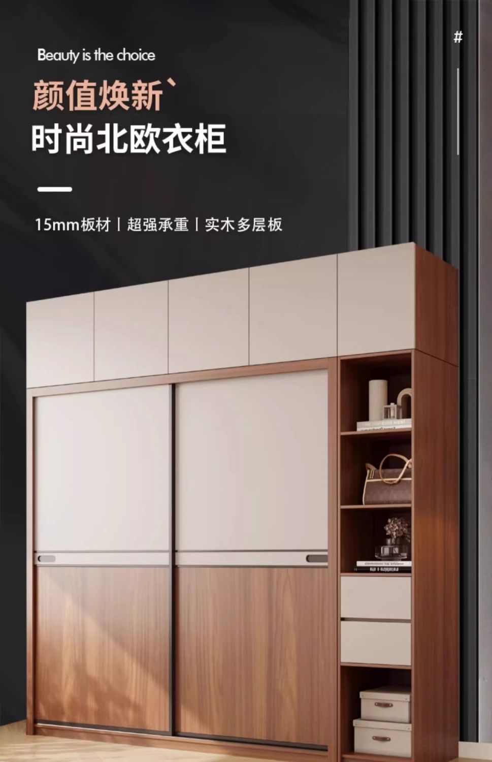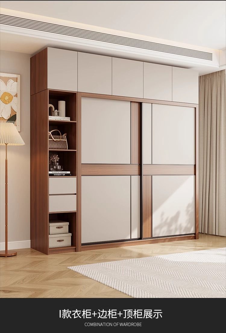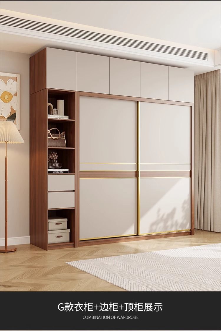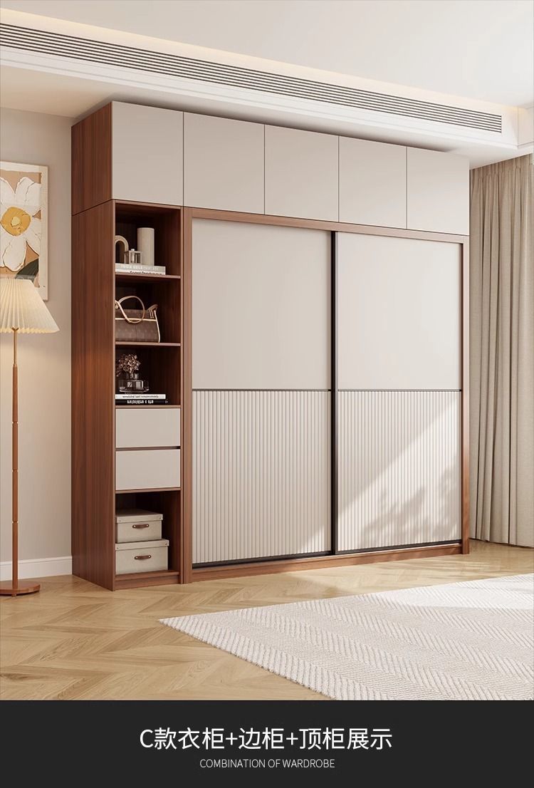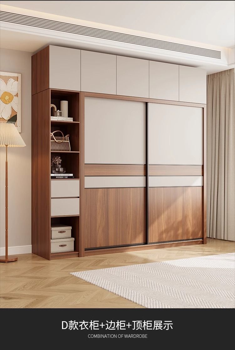 단단한 나무 다층 보드 빛 고급 슬라이딩 도어 슬라이딩 도어 옷장 가정용 침실 현대 간단한 완성 된 생태 보드 옷장스토어 가기